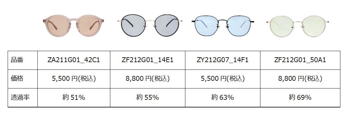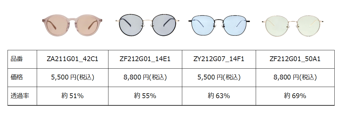 スタイリングに合わせやすいブラウン系・グレー系と、スタイリッシュで大人っぽいスタイリングとの相性が良いブルー系・グリーン系をラインアップ。今夏を楽しめるカラフルなレンズがおすすめです。