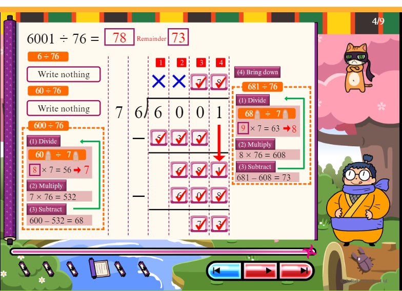 ■ICT教材「SuRaLa Ninja! 」について 海外版として小学生向けに開発された、インタラクティブなアニメーションを通じて加減乗除の四則計算を楽しく学べる ICTシステムです。生徒は自身のデバイスで自分のペースで学習できるとともに、指導者は学習管理システムを通じて生徒の学習の進捗や理解度を把握した上で学習内容を調整でき、生徒個々人にあわせた個別最適化の学習を実現します。現在、スリランカ向けのシンハラ語版、インドネシア向けのインドネシア語版、また、主にインドやフィリピンで活用されている英語版があります。