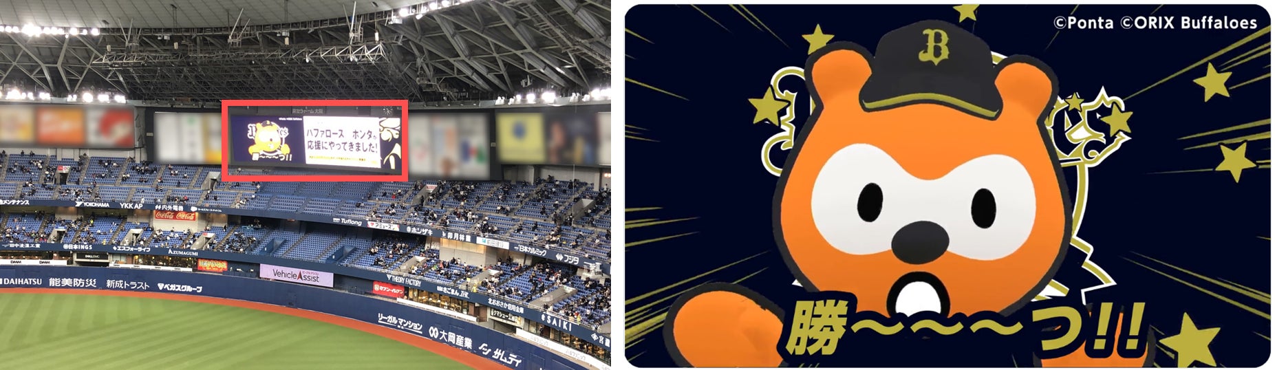 ■京セラドーム大阪の球場内ビジョンでバファローズ☆ポンタの音声付き応援動画を放送