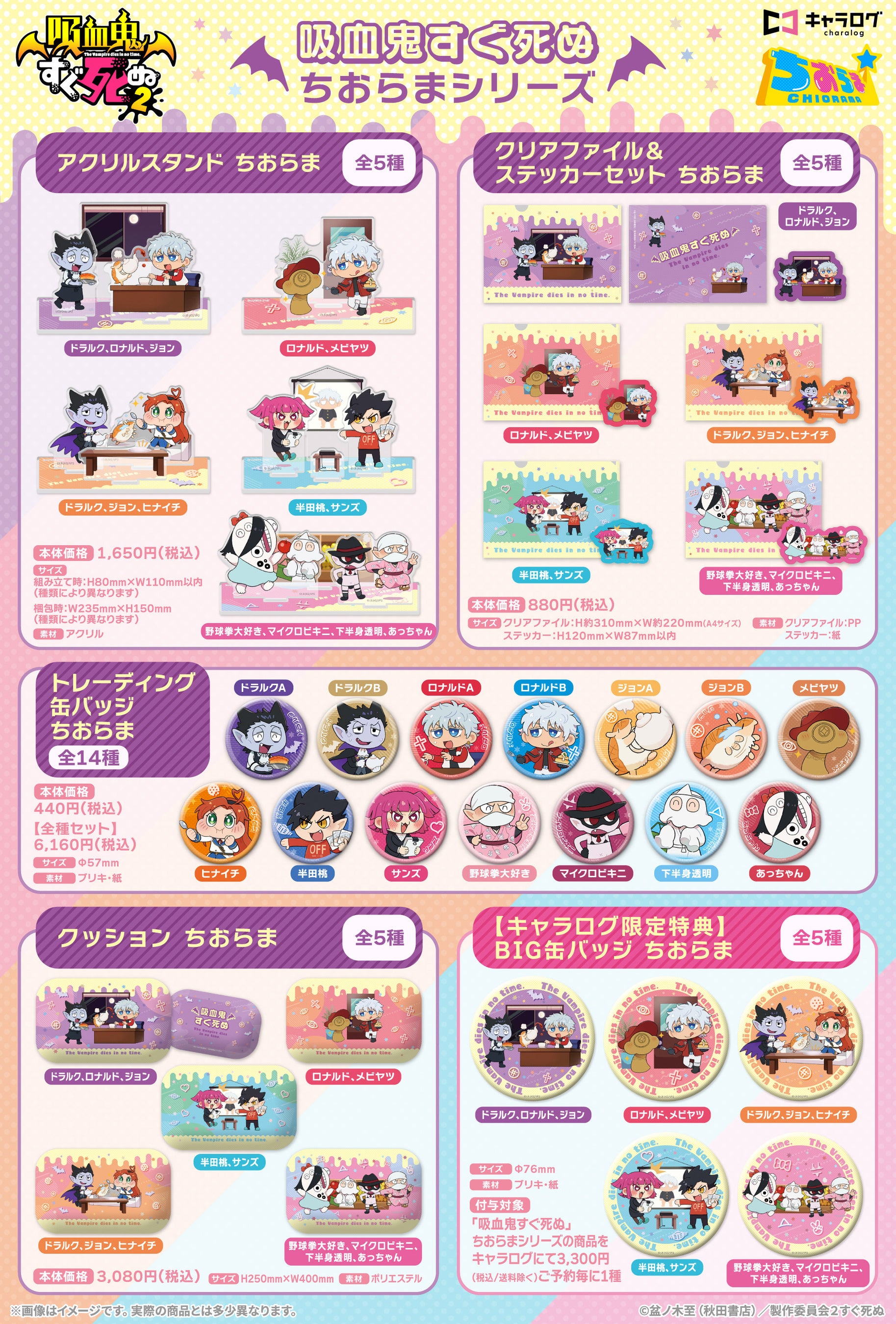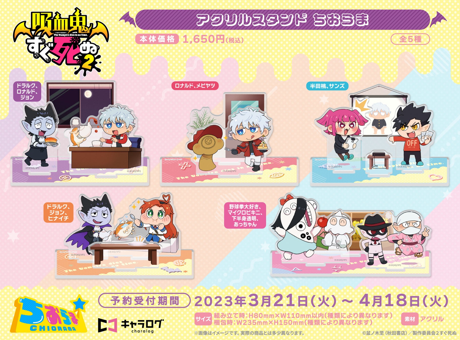 TVアニメ『吸血鬼すぐ死ぬ』より、描き起こしミニキャライラストの「ちおらま」シリーズ商品が販売中です。