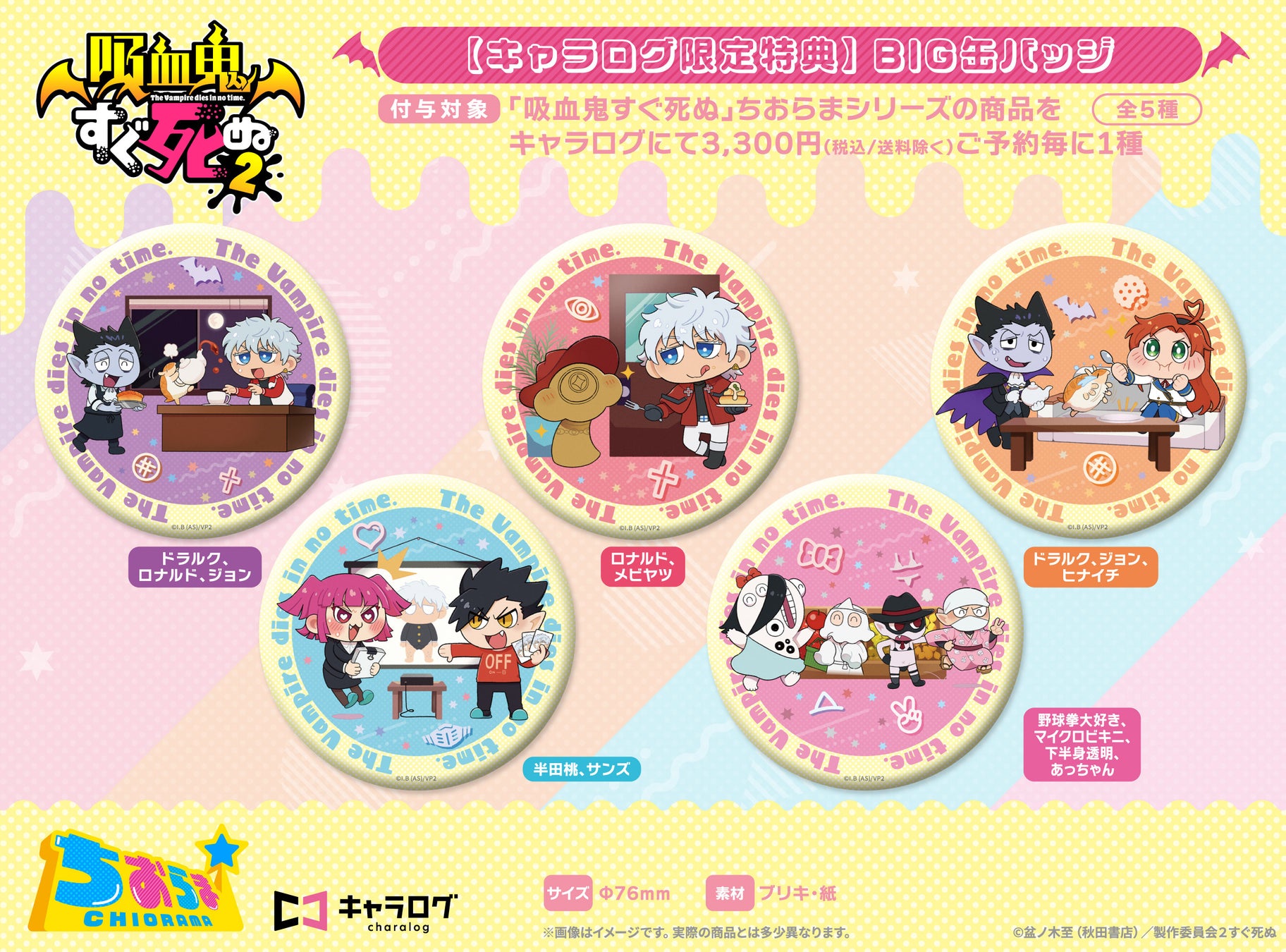 予約期間中、キャラログにてアニメ『吸血鬼すぐ死ぬ』の「ちおらま」商品を