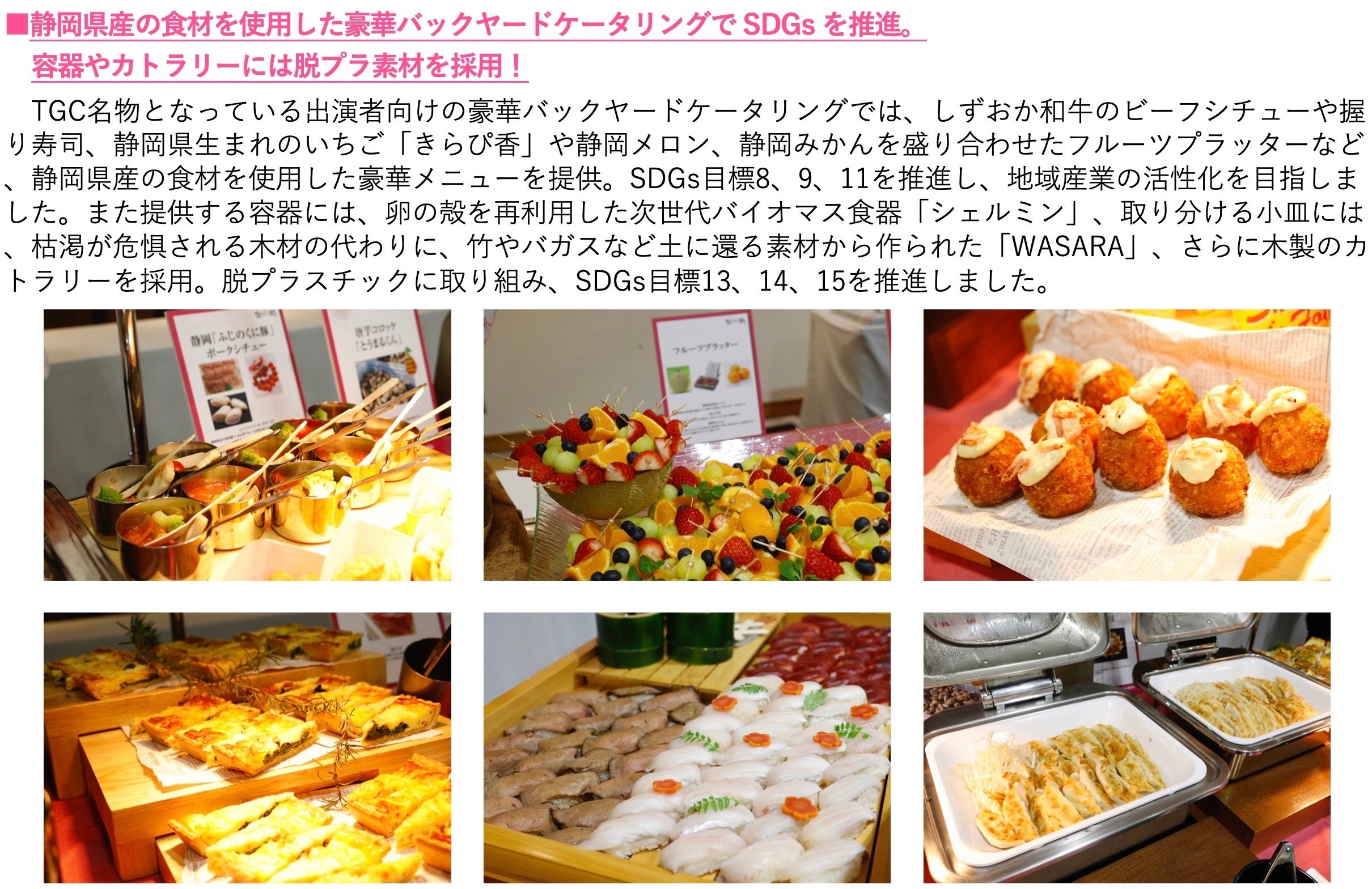 このステージは2022年11月1日(火)に発表をした、日本を代表するエンタテインメントカンパニーである株式会社W TOKYOと株式会社LDH JAPANがパートナーシップを組み、全国各地で開催されるTGCの場を活用して、ダンスをはじめとするエンタテインメントと自治体とのコラボレーションを通じた、地域社会への貢献、SDGsの推進(主にSDGs目標3、4、17)を目指す新たなプロジェクトの一環として実現したスペシャルコラボレーション。静岡サレジオ高等学校にて行われたダンスの練習会には、MA55IVE THE RAMPAGEのメンバーやEXPG STUDIOのインストラクターも参加し直接指導。次世代育成と、TGCのMA55IVE THE RAMPAGEのステージにてダンサーとして共演できるという夢の舞台の創出、圧倒的なエンタテインメント体験を通して、多くの子どもたちの夢をサポートすると同時に、SDGs目標4「4.質の高い教育をみんなに」を推進しました。