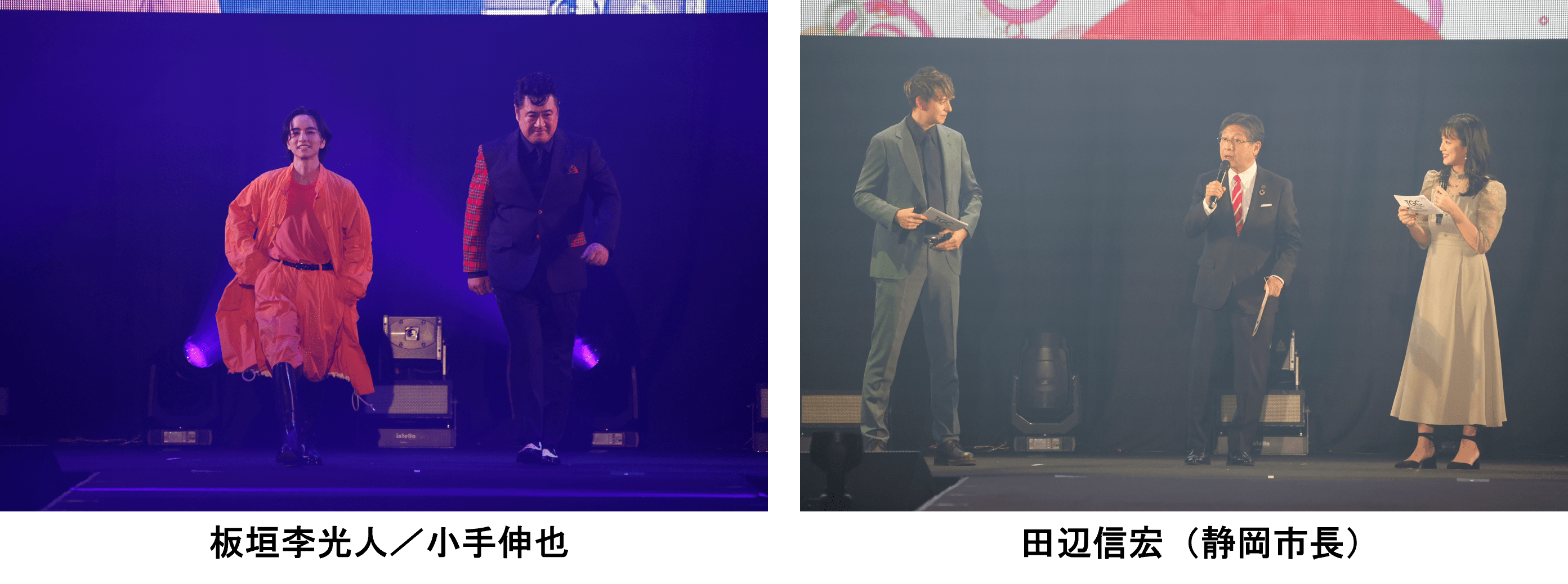 静岡市のスペシャルステージには、2023年1月8日(日)に放送がスタート、静岡が重要な舞台となっているNHK大河ドラマ「どうする家康」に出演する板垣李光人、小手伸也が、サステナブルなアイテムを取り入れた衣装で登場。ドラマの撮影現場エピソードや、今回静岡でやってみたいことなどをトークしました。