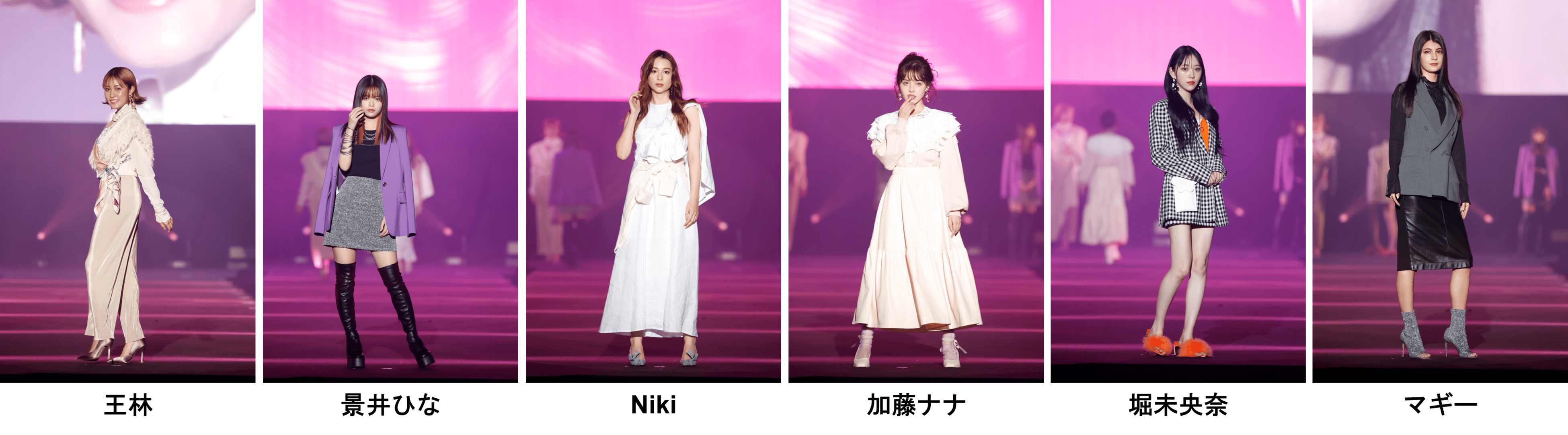 2019年の初開催以来3開催連続でTGCしずおかのプラチナパートナーである株式会社シャンソン化粧品のステージでは、株式会社シャンソン化粧品が展開するメイクブランド「DONACERE(ドナチェーレ)」のアイテムを使用して、テーマに合わせた6パターンのメイクで人気モデルが登場。TGC初登場の王林は柔らかいイメージの「Mellow」、景井ひなはクールで凛とした強さを感じさせる「Dramatic」、Nikiは清潔感のある色っぽさを醸し出す「Sensual」、加藤ナナはピュアで甘い雰囲気のドーリーな「Romantic」、堀未央奈はヘルシーで活発なイメージの「Active」、そしてマギーは強さの中で女性らしさが際立つ「Mode」なメイクで登場し、6名それぞれの持つ魅力がさらに引き出されました。