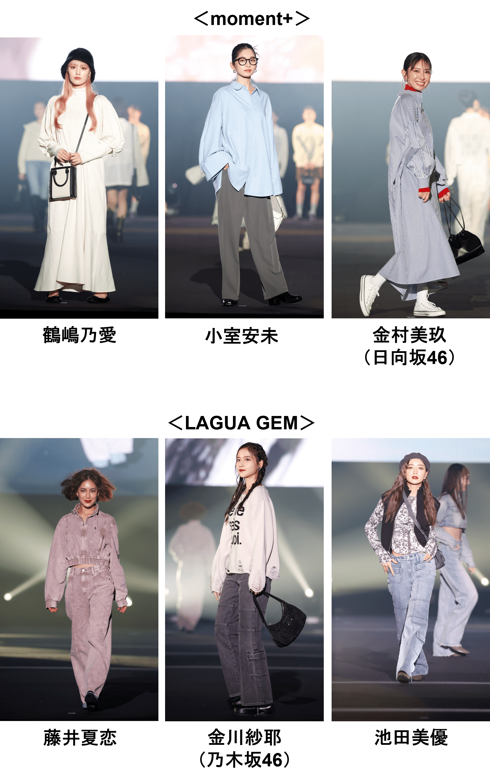 ⑥トレンドが日々変化する中で、ものを捨てない、ものを大切にすることもファッションにおけるSDGsにおいて重要なテーマとなっています。「SEASONLESS FASHION STAGE」では、手軽にトレンドかつベーシックで着回せるアイテムを提供するmoment+と、TGCでも常連の大人気ブランドで、トレンドアイテムを豊富に取り揃えるLAGUA GEMが参加し、前シーズンのアイテムやオールシーズンで活用できるアイテムと、今季のトレンドアイテムをミックスしたコーディネートを提案。買いすぎないスマートファッションで、金村美玖(日向坂46)や金川紗耶(乃木坂46)、藤井夏恋、池田美優らが登場し、SDG目標12、13、17を推進しました。