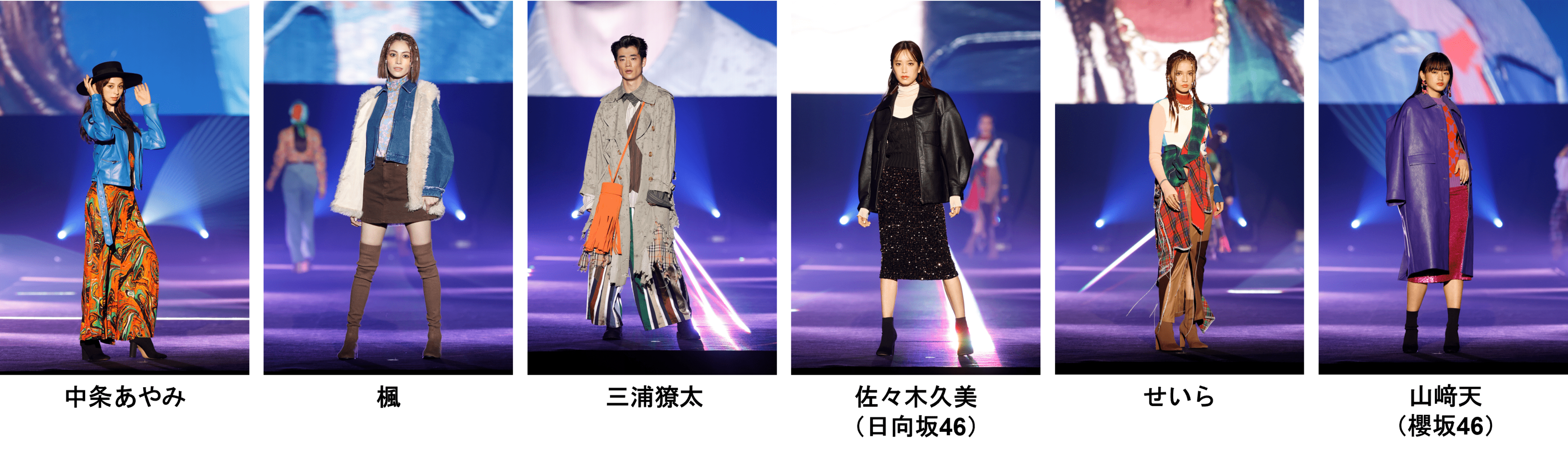 ランウェイには、環境省サステナビリティ広報大使も務め、サステナブルな繊維や製法で作られたLevi's®︎のデニムアイテムに身を包んだ大人気モデルトラウデン直美や、昔ながらの技法・手動機械で丁寧に編まれたジャガード生地のエスニックな衣装に身を包んだゆうちゃみ、さらに綱啓永や、TGC初登場!山下幸輝ら話題の若手俳優陣も登場。サステナブルなものづくりを推進する2ブランドとともに、ファッションを通じてSDGs目標12、13、17を推進しました。