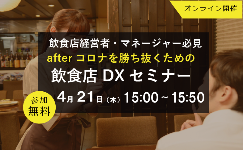 飲食店DX!アフターコロナを勝ち抜くIT戦略セミナーを4月21日(木)15時よりオンライン開催