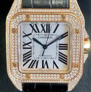 カルティエの定番人気のサントスからダイヤモンドがついたモデルがランクインしました。特別な日に身に着けたいアイテムですね。