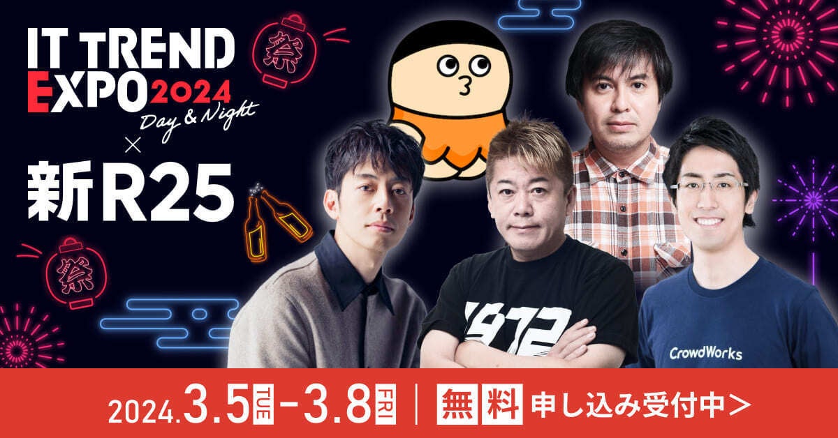 【ビジネスバラエティの祭典】夜20:00~はお酒片手に!? 業界最大級のオンライン展示会「ITトレンドEXPO2024」が「新R25」とのコラボで “夜の部” を開催!