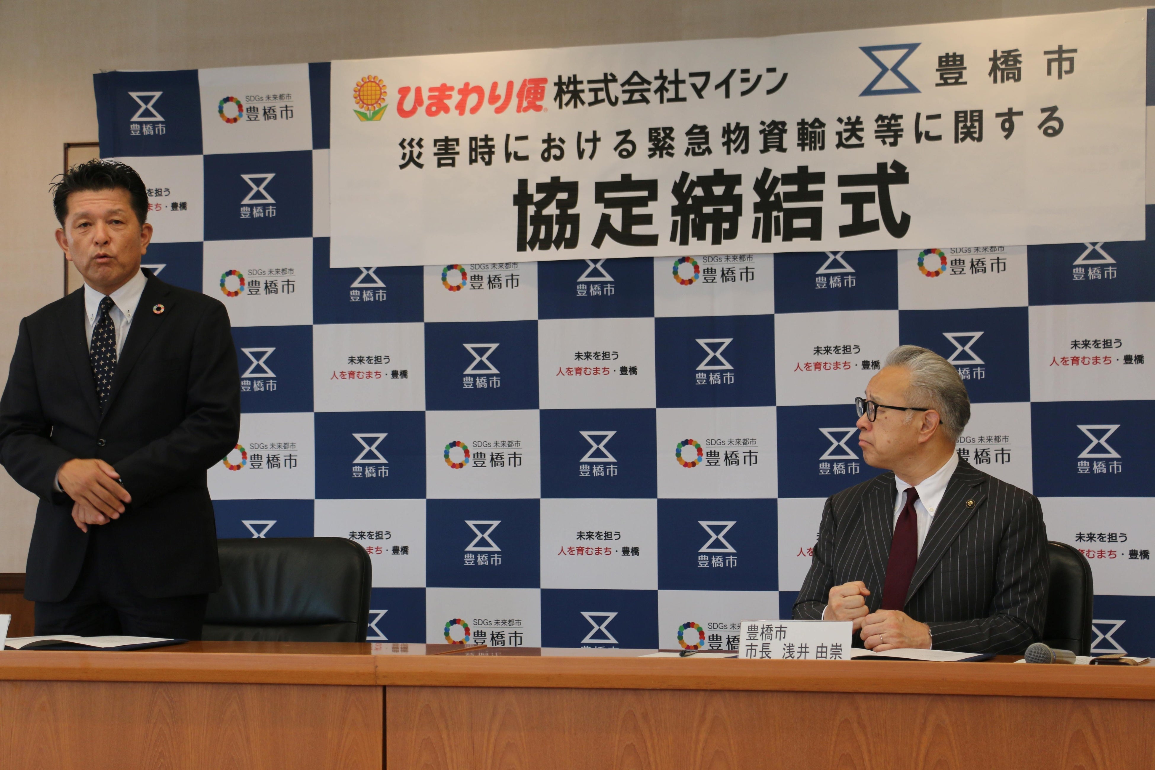 豊橋市の浅井由崇市長は「物流協定よって、今までの被災時においても課題であった物資の円滑な輸送への取組体制についてアプローチできます。本当に感謝いたします」と述べました。