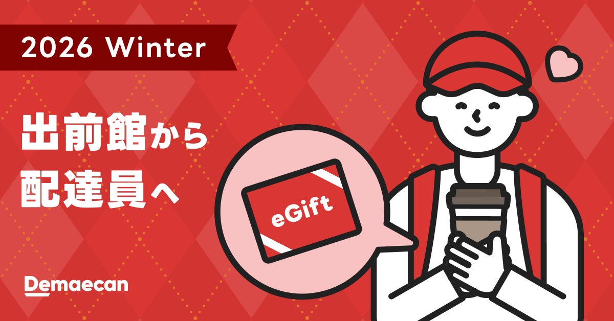 株式会社出前館は、運営するデリバリーサービス「出前館」において、日頃からサービスを支えてくださる配達員の方々へ感謝を伝える冬のプチギフトを本日配布いたしました。対象となるのは、期間内に一定の品質基準をクリアしている配達員の方々で、温かいドリンクやお食事などにご利用いただけるデジタルギフトを配布します。