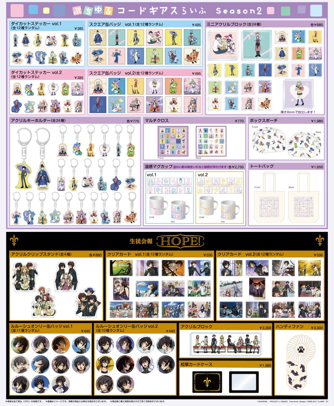 「ぷちゆるコードギアスらいふ」&「生徒会報HOPE!」のイラストを使用した新商品を多数販売