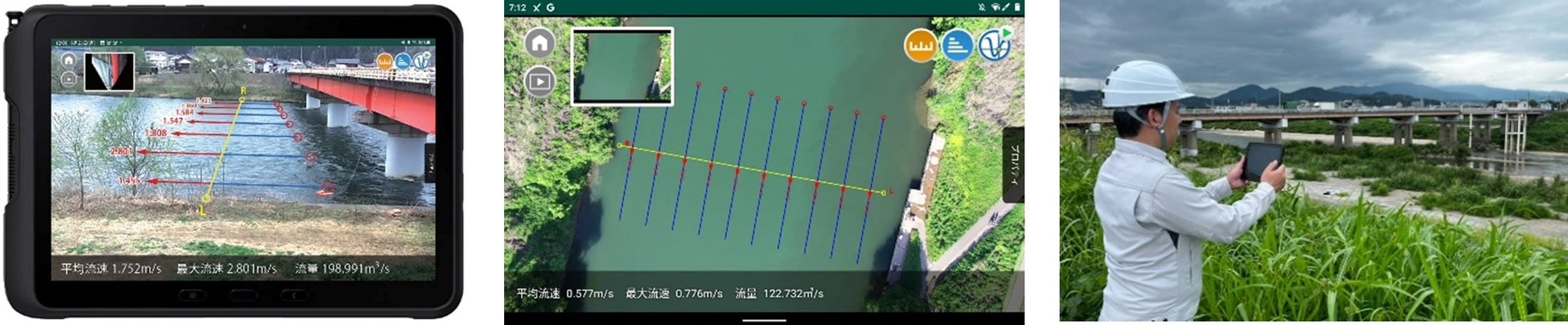 雨風に強いIP68対応の頑丈な業務用タブレット「Galaxy Tab Active4 Pro」流速・流量計測機器として洪水災害時に活躍