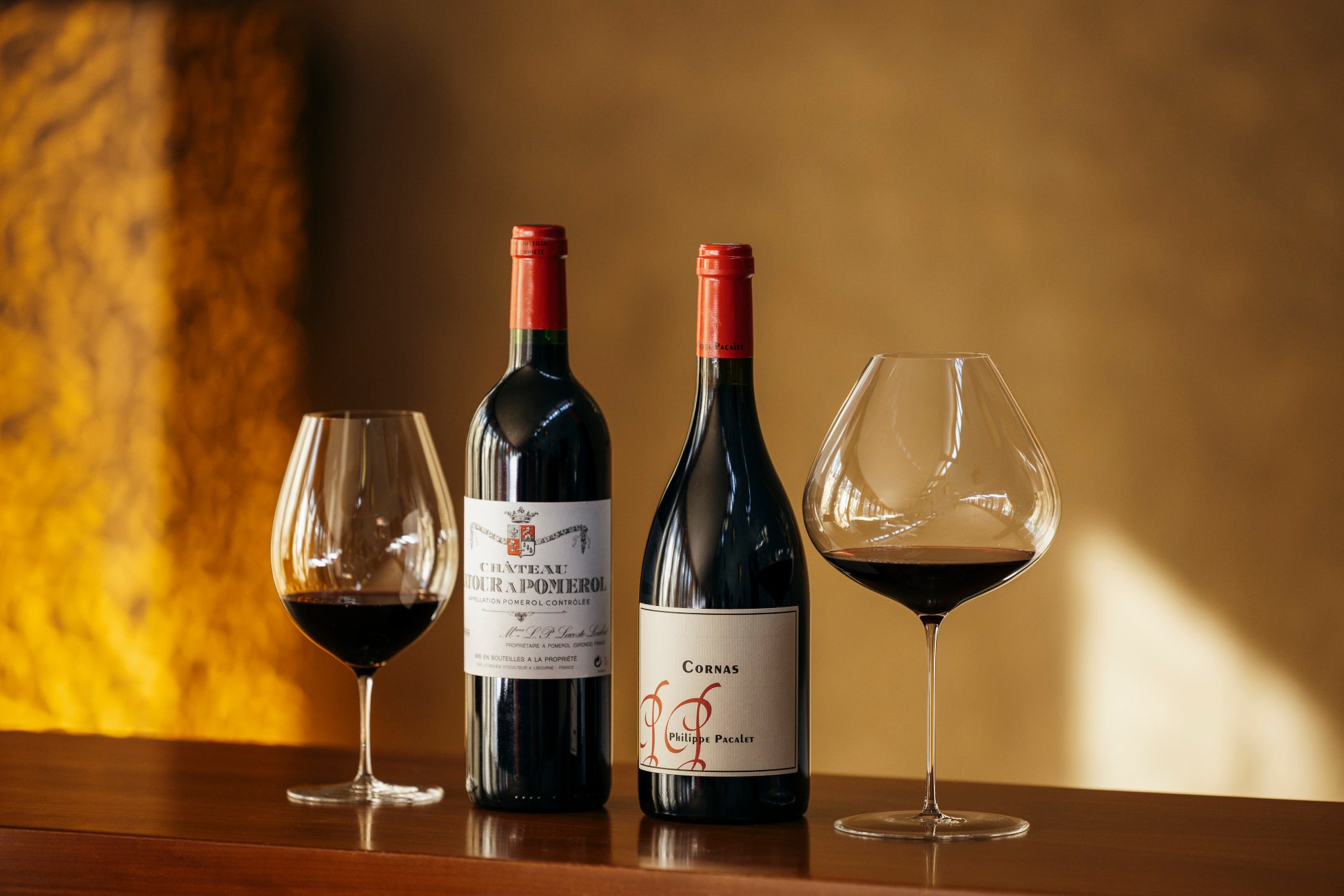 前菜パテ・ド・ロワには、「フィリップ パカレ コルナス 2018」を。ブルゴーニュ地方の赤ワインで、果実の凝縮感が特徴です。パテ・ド・ロワは、さまざまな種類の肉や部位で構成されているため、旨味やテクスチャーが互いに絡み合い、味もしっかりしています。じっくり味わう料理に余韻を楽しめるワインを合わせることで、これから始まるコースの展開を期待させる、序盤にふさわしい響きのマリアージュです。