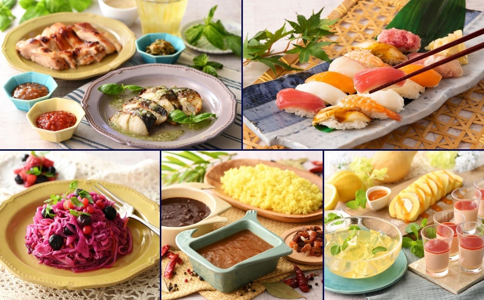 色鮮やかな『デリ』の数々、塩麴で旨みが増したさわらをバジルガーリック風味で香ばしくグリルした『さわらのグリル 塩麴バジルソース』、夏の香りのマンゴーソースをまとった『ロールケーキ マンゴーソース』など、夏色のメニューを食べ放題でご堪能いただけます!