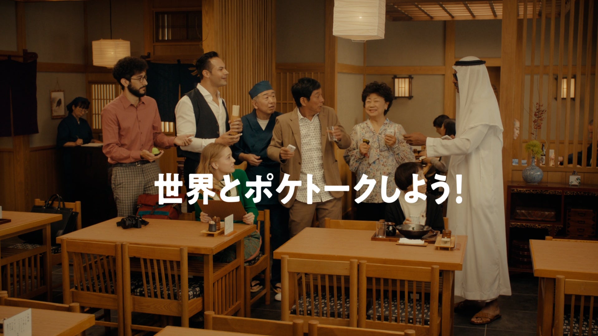 「世界とポケトークしよう!」のフレーズで親しまれている「ポケトーク」の新CMには、引き続き明石家さんまさんを起用します。今後、訪日外国人客の増加が期待されると同時に、あらゆる場面での多言語対応ニーズが高まると考えられている中で、本作に登場する明石家さんまさんのように、世界中の人と会話をお楽しみいただきたいというメッセージが込められています。会話だけでなく、「カメラ翻訳機能」を使って日本語で書かれたメニューを説明するシーンも見どころです。