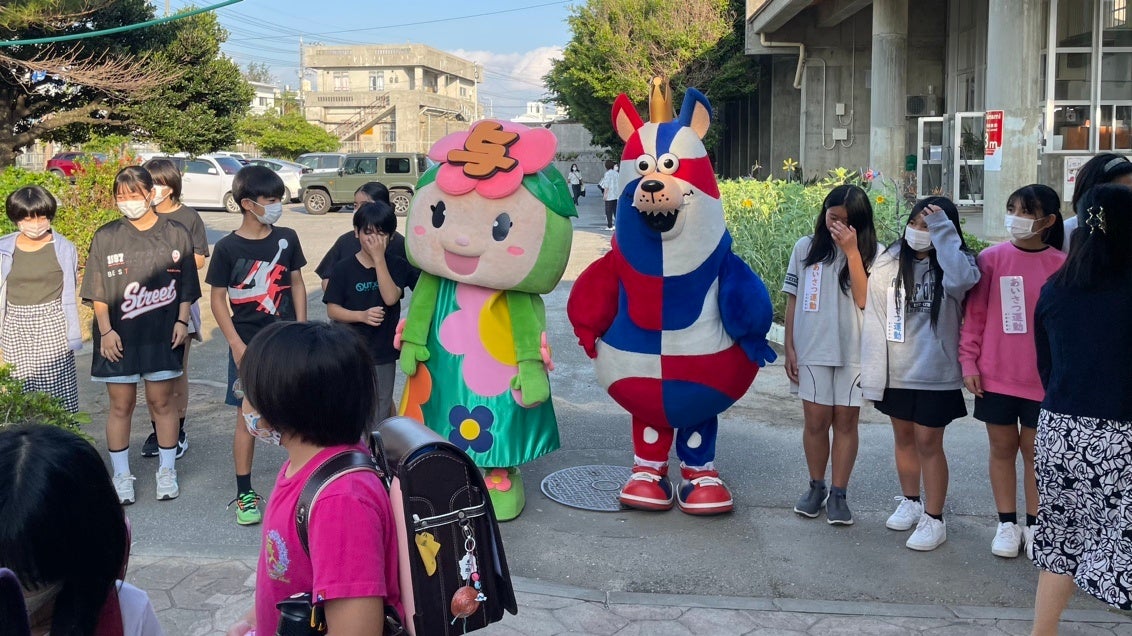 「おおきなわ」の活動の一環として行っている「ゴーディーによる朝のあいさつ運動」で、10月は北中城村とうるま市の小中学校(12校)にてあいさつ運動に参加しました。ご協力いただいた各小中学校の皆さま、ありがとうございました。