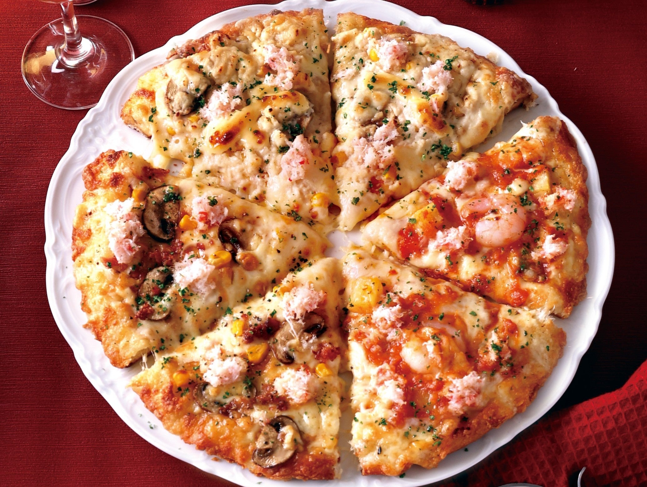 「紅ズワイのフィッシャーマンズ」「紅ズワイのウインタークラブ」「ピザーラ カニマヨ」の3種類を一枚で楽しめる、カニ好きにはたまらない一枚です。