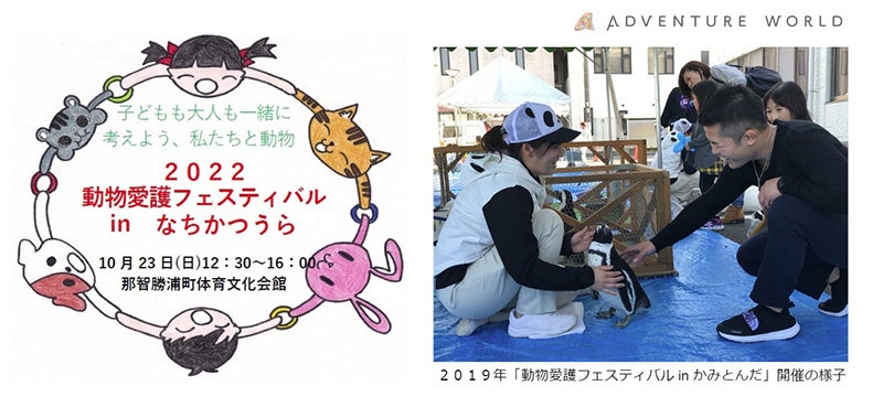 アドベンチャーワールド(和歌⼭県⽩浜町)は、2022年10月23日(日)、和歌山県及び公益社団法人和歌山県獣医師会主催の「2022動物愛護フェスティバル in なちかつうら」にブース出展いたします。当日は、防災とペットについての講演や、動物フォトコンテストの応募写真展示などを予定しており、大人から子どもまで、動物と人との関わりについて理解を深める催しを予定しております。