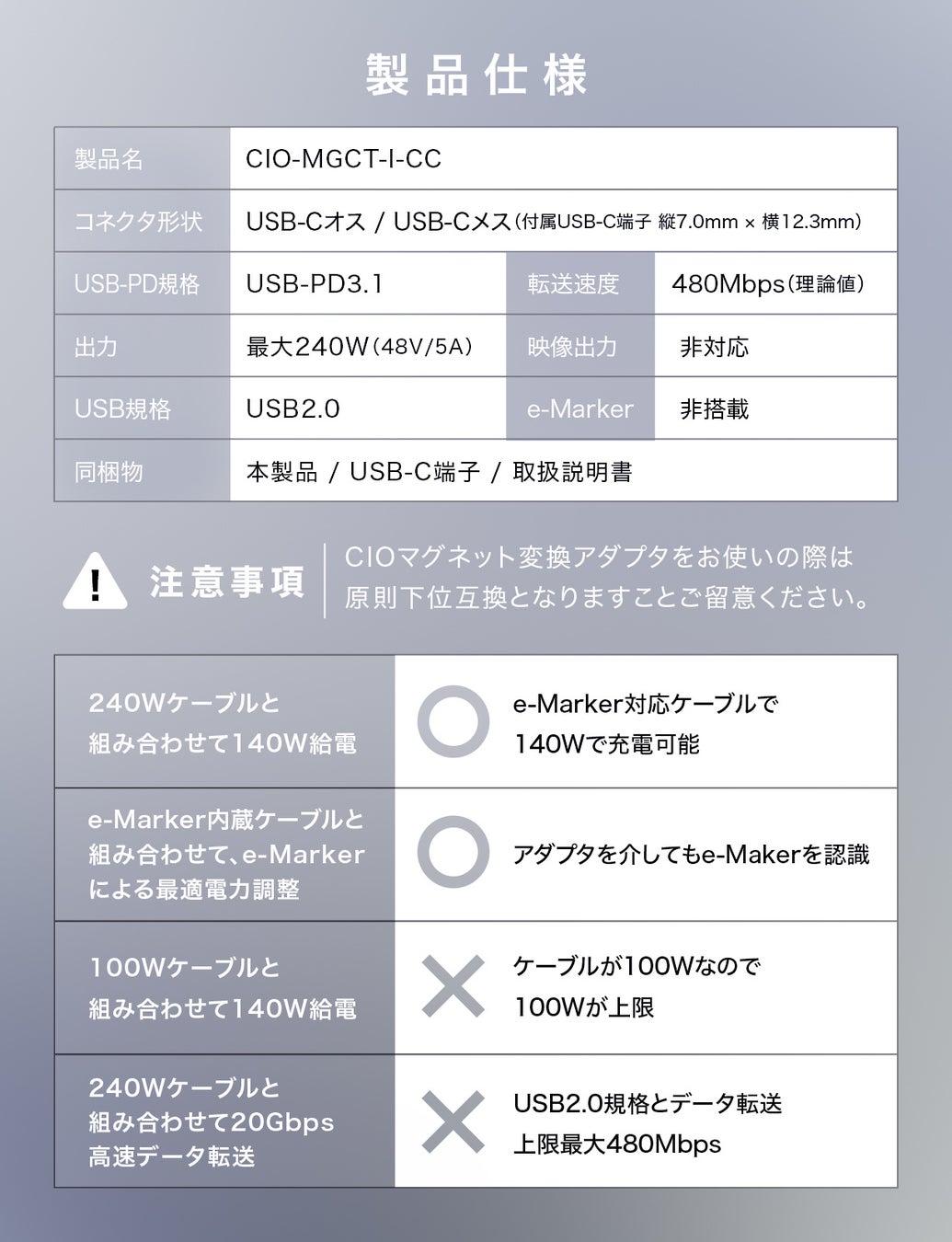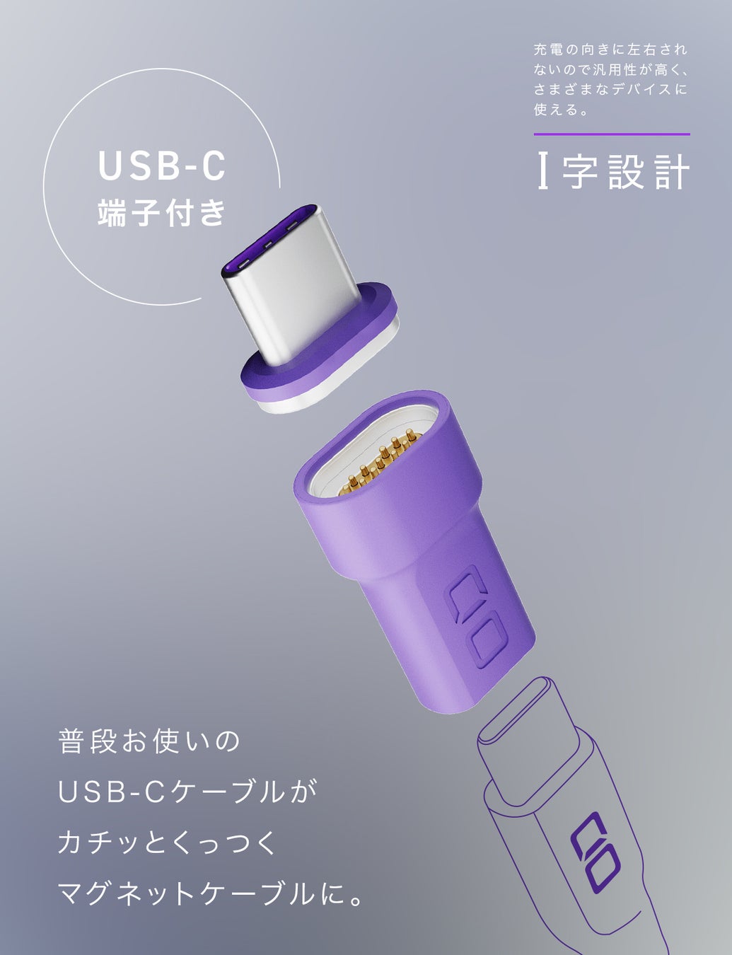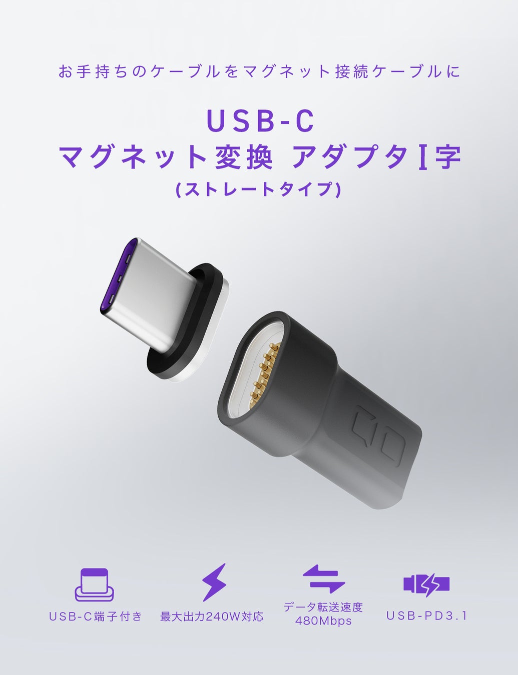 USB-C to C・USB2.0・マグネットケーブル・マグネット端子・変換アダプタ・ストレートタイプ・I字型・ スマホ充電・USB-PD3.1・転送速度480Mbps(理論値)・最大240W出力対応