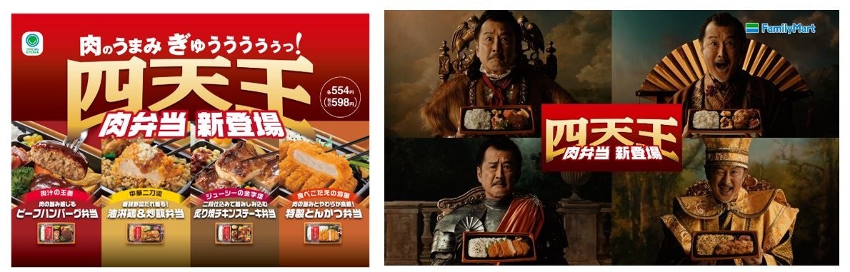 ファミマユーザーが選ぶ一番好きな弁当1位は「肉」という声にお応えして肉のうまみぎゅうううううっ!「肉弁当 四天王」キャンペーン2月8日(火)より開始~吉田鋼太郎さんが四天王を演じる新CMも放映開始!~