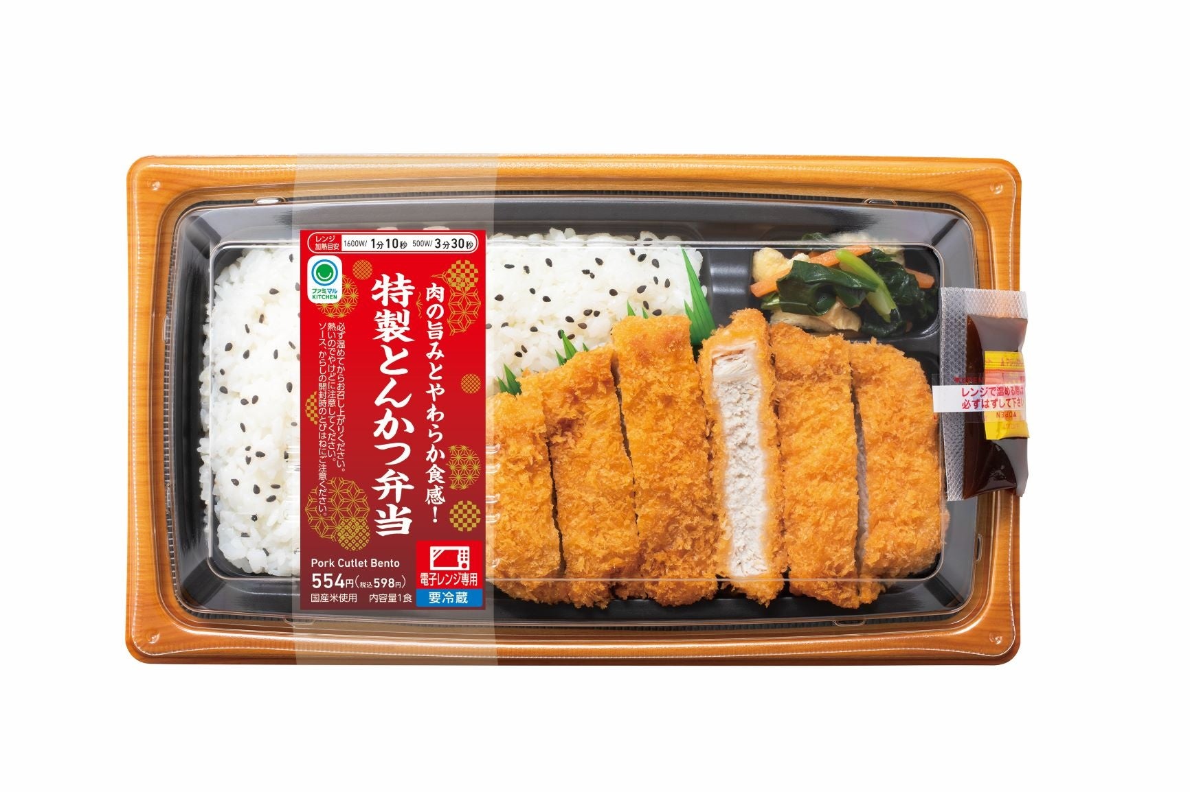 内容:原料から調理まで温度管理にこだわり、専門店のようなとんかつを追求しました。通常よりも揚げる温度を低く設定し、じっくりと時間をかけて調理することで、やわらかく、肉本来の旨みが味わえるとんかつに仕上げました。ソースは香味野菜や果物などにこだわり、酸味と甘みのバランスがとれた、オリジナルソースです。