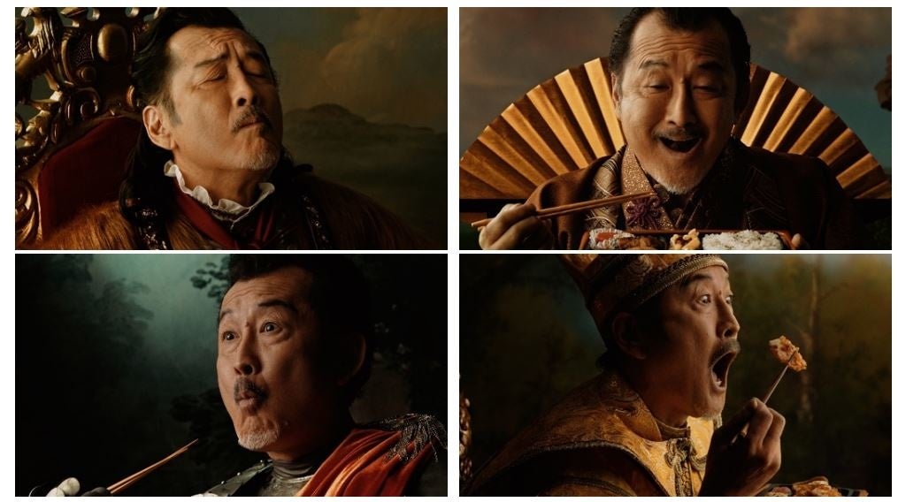 吉田鋼太郎さんが、「肉弁当 四天王」のそれぞれの商品を体現する4人のキャラクターを演じます。今回の撮影を振り返り、吉田さんからコメントをいただきました。4役を演じたなかで、一番気に入っている姿については、「なかなか着る機会がない、甲冑姿の騎士」とコメント。そして、「大名や大王など、普段演じることがほとんどない姿を1日で着ることができたことが非常に良い体験であった」と振り返りました。商品については、実際に肉のうまみが詰まった4種類の弁当を食べて、「どれも四天王の名にふさわしい、甲乙つけがたいおいしさです。」と絶賛しました。