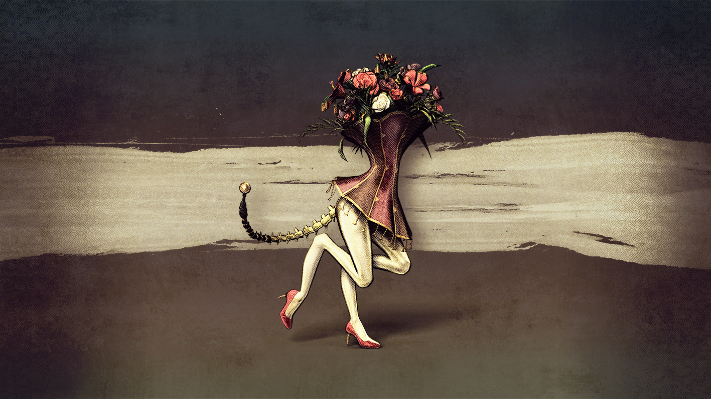 チナリーはヒトの前肢と馬の後肢を持っていますが、ヴァースの下半身はその2つを融合させたモノです。そして、チナリーの植え込みになった頭部をプランターにスケールダウンしたモノを上半身として構成しています。また、人間の育んだ文化的な要素を判りやすく取り入れて、怪異らしい滑稽さを演出したいと考え、元々足の長いヴァースに更にヒールを履かせています。