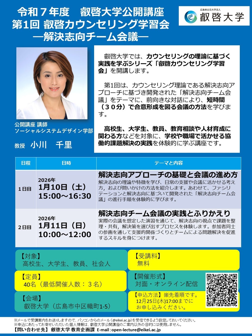 【受講者募集】2025年度公開講座 第1回叡啓カウンセリング学習会:解決志向チーム会議 - 【公式サイト】広島県公立大学法人 叡啓大学