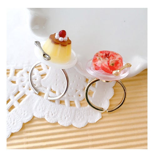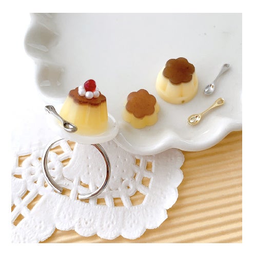 お皿も一緒にレジンで作ってミニチュアにしたり、グラスを使ってプリンアラモードにしてみたり。