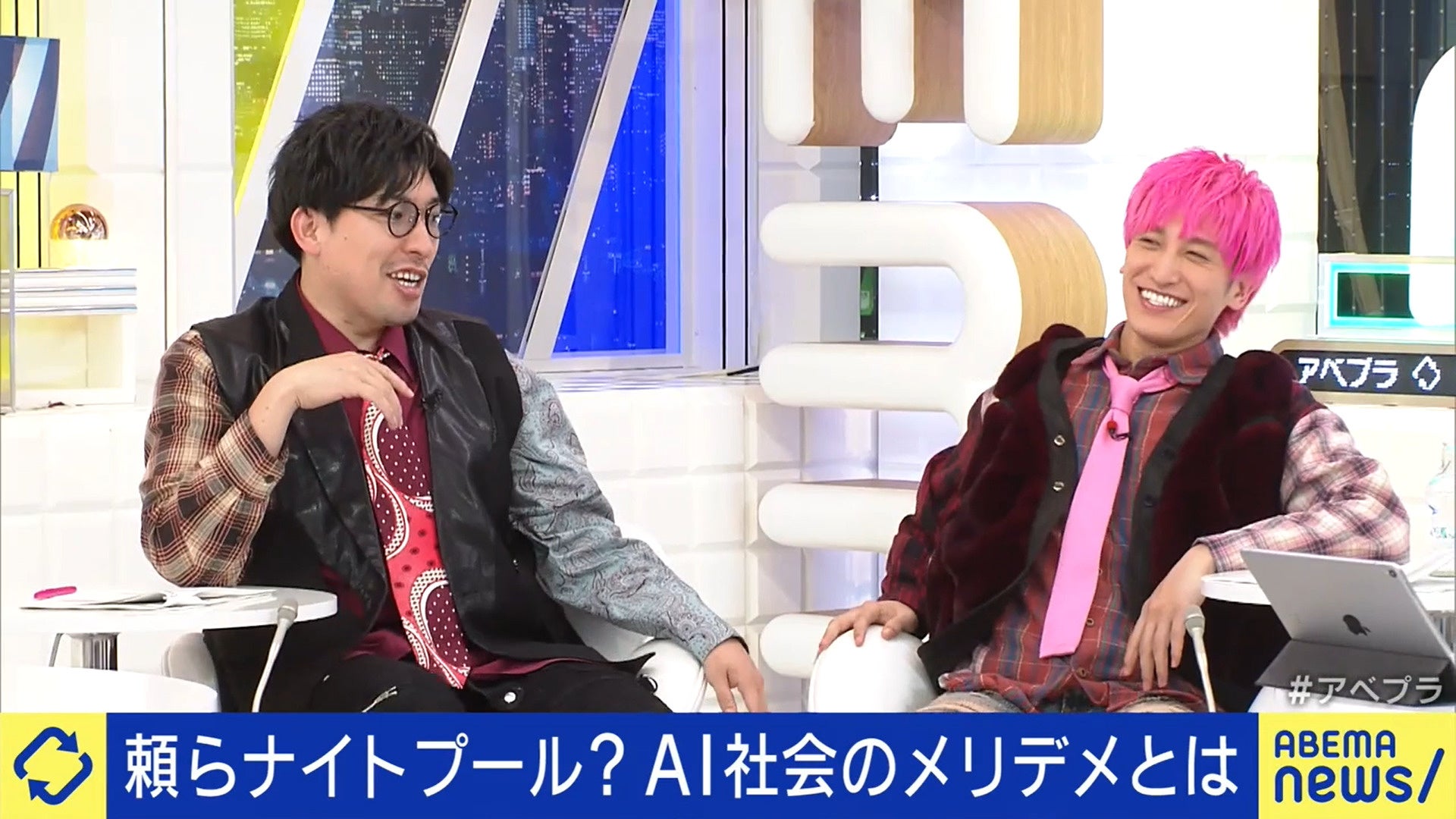 番組MCを務めるお笑いコンビ・EXITのりんたろー。さんは「これを聞いて、思い出したことがある。最近、兼近くんがよく電話していて、『珍しいな』と思って耳を澄ましていたら、通話相手がどこか片言で話していた。言えずにいたけど、もしかしてAIなのかな?と思っているんですけど…」と、聞くことをためらっていた疑問を直撃。
