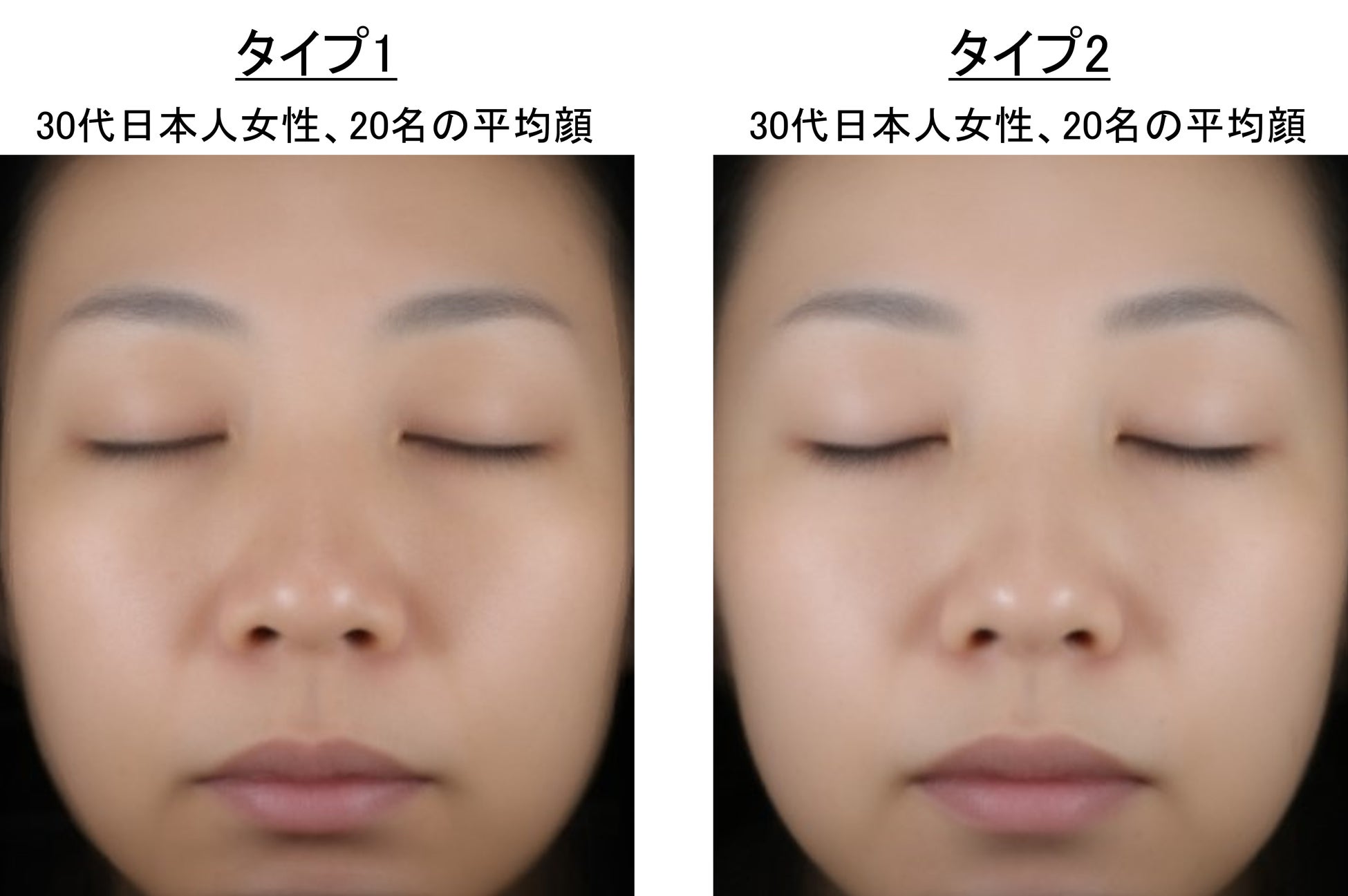 日本人女性343名を対象に、皮脂RNA解析で肌タイプを判定、その後カメラと被写体の距離や照明環境を一定にして素顔の写真撮影を行い、見た目に表れる特徴を比較しました。その結果、肌の色や形状のいくつかの観点で、2つの肌タイプの顔画像に統計的に優位な違いがあることがわかりました(図2)。