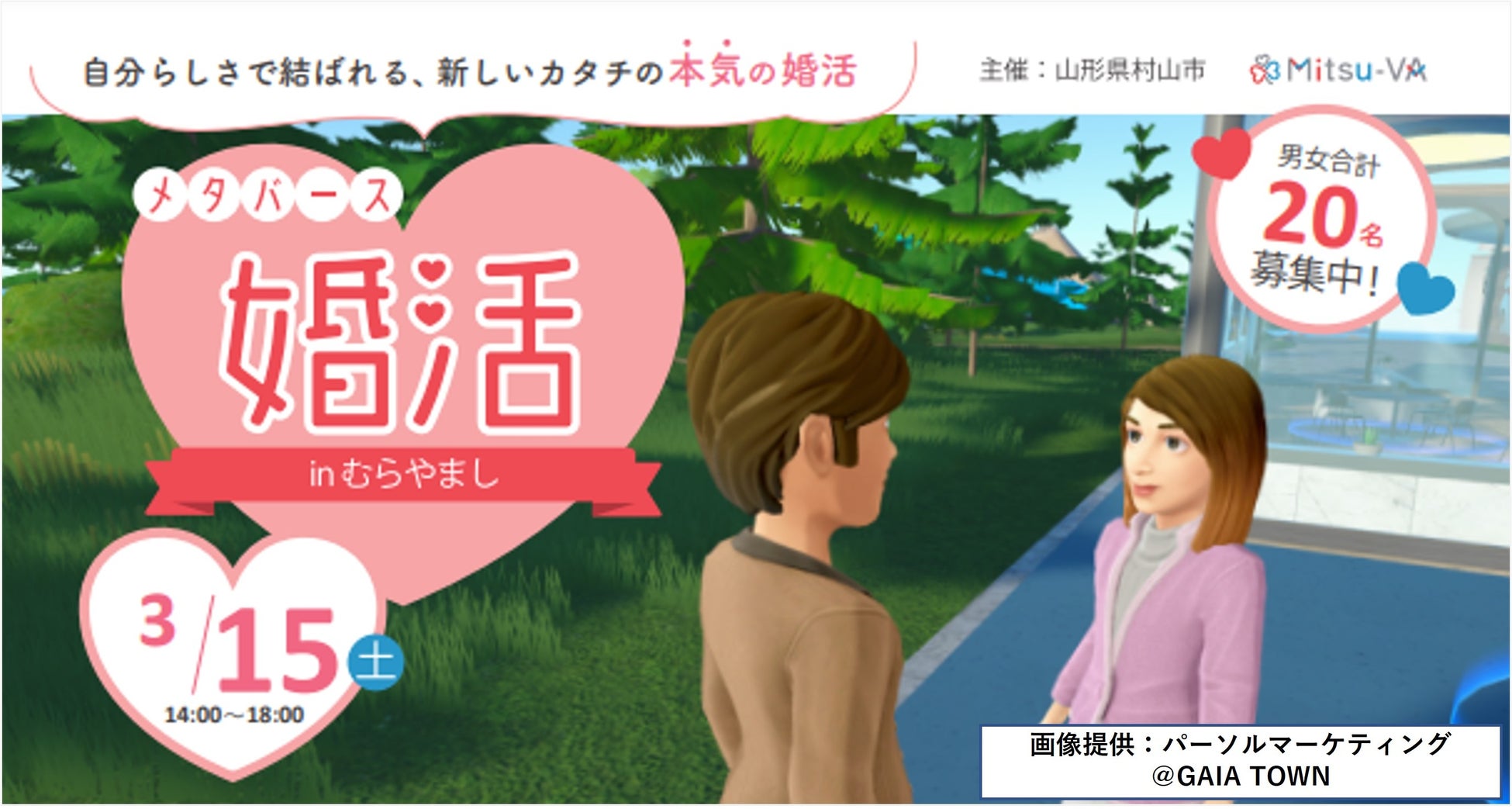 「はたらいて、笑おう。」をビジョンに掲げるパーソルグループのパーソルイノベーション株式会社(本社:東京都港区、代表取締役社長:大浦 征也、以下パーソルイノベーション)が手掛ける、メタバース婚活サービス『Mitsu-VA(ミツバ)』(https://www.mitsuva.jp/)は、山形県村山市(市長:志布 隆夫、https://www.city.murayama.lg.jp/)が主催し、S.E.Onetop合同会社(本社:山形県東根市、最高経営責任者:滝口 誠、https://se-onetop.com/)主管、メタバース婚活協会が運営事務局を行う、2025年3月15日(土)開催のメタバース婚活イベント「村山市メタバース婚活」をシステム提供・運営面で支援します。