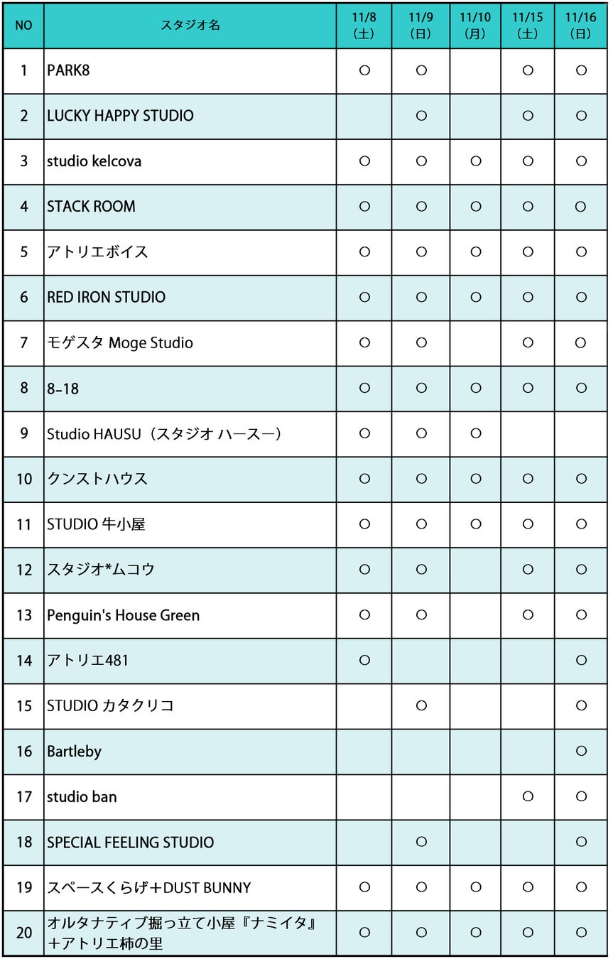 【参加スタジオ】全20スタジオ(所属アーティスト104人)
