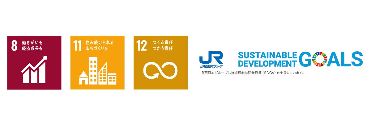 JR西日本ホテルズは、持続可能な開発目標(SDGs)を持ち、地域と共に、お客様一人ひとりの豊かな人生を広げます。今回ご案内の取り組みは、SDGs 目標の8番、11番、12番に貢献するものと考えています。