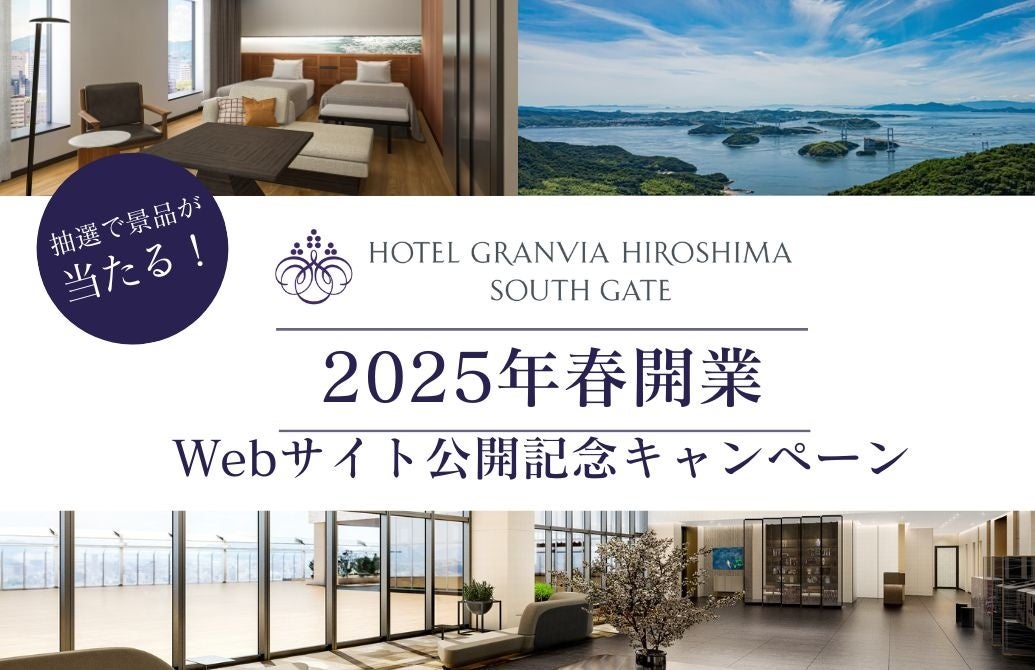 株式会社ジェイアール西日本ホテル開発(京都市下京区、代表取締役社長 伊勢正文)と株式会社ホテルグランヴィア広島(広島市南区、代表取締役社長 島田正義)は、2025年春、新しいJR広島駅ビルに開業する新ホテル「HOTEL GRANVIA HIROSHIMA SOUTH GATE(以下「サウスゲート」)」のWebサイトを 2024年3月28日(木)に開設・公開いたします。また、Webサイトの公開を記念して、2024年4月1日(月)9:00より、アンケートにご協力いただいた方から抽選で広島・瀬戸内に関連した景品が当たる『「HOTEL GRANVIA HIROSHIMA SOUTH GATE」Webサイト公開記念キャンペーン』を開催いたします。