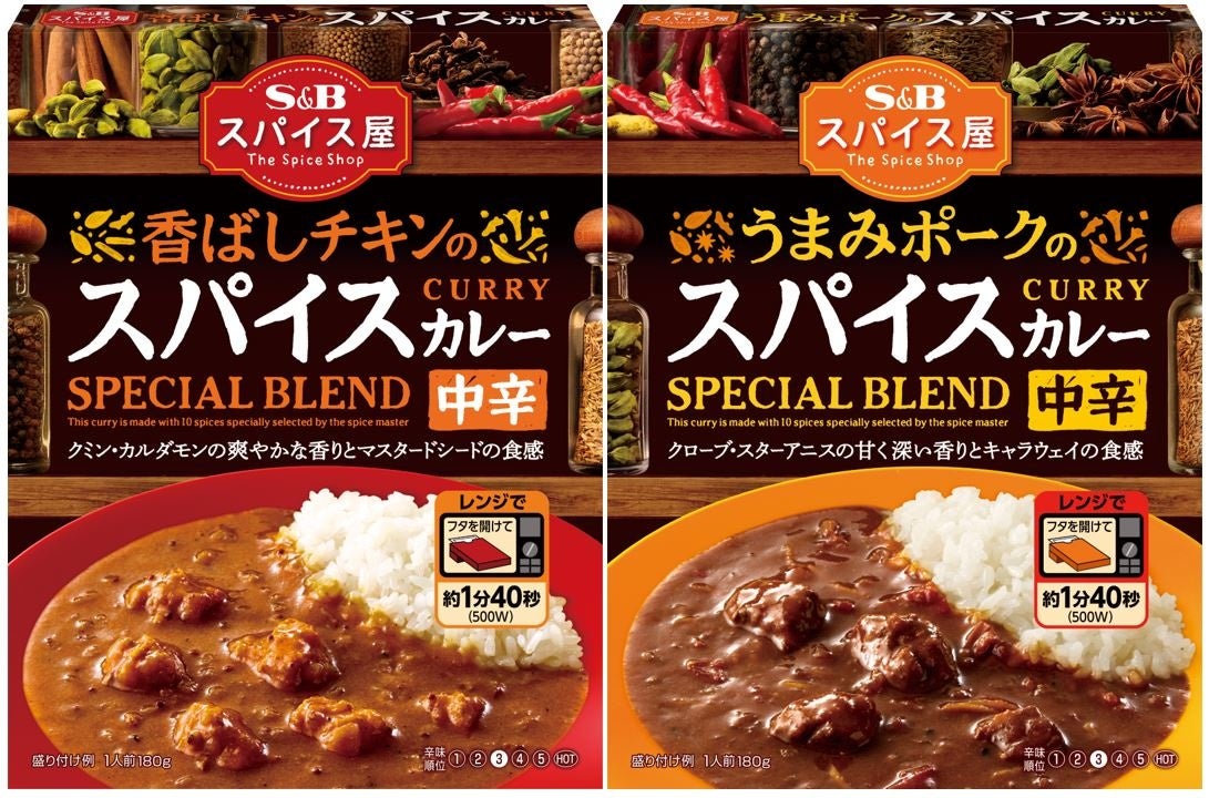 レンジで本格スパイスカレー スパイス屋S&Bならではの味わい 「S&B スパイス屋 香ばしチキンのスパイスカレー 中辛」「S&B スパイス屋 うまみポークのスパイスカレー 中辛」2月7日 新発売