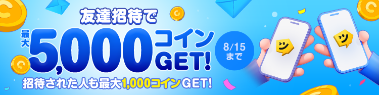 8/15(火)までピッコマアプリ限定で、招待した人も招待された人もコインが獲得できるイベントが開催中です。招待するユーザーは10回を上限に友達を招待する度に500コイン受け取ることができ、最大5,000コインを獲得。招待された新規ユーザーは500コインがプレゼントされ、招待コード入力当日から5日間、作品閲覧すると1日100コインを追加で受け取ることができ、最大1,000コインを獲得することが可能です。無料でコインを獲得して作品を購入できるチャンス。是非多くの人をピッコマに招待してみてはいかがでしょうか。
