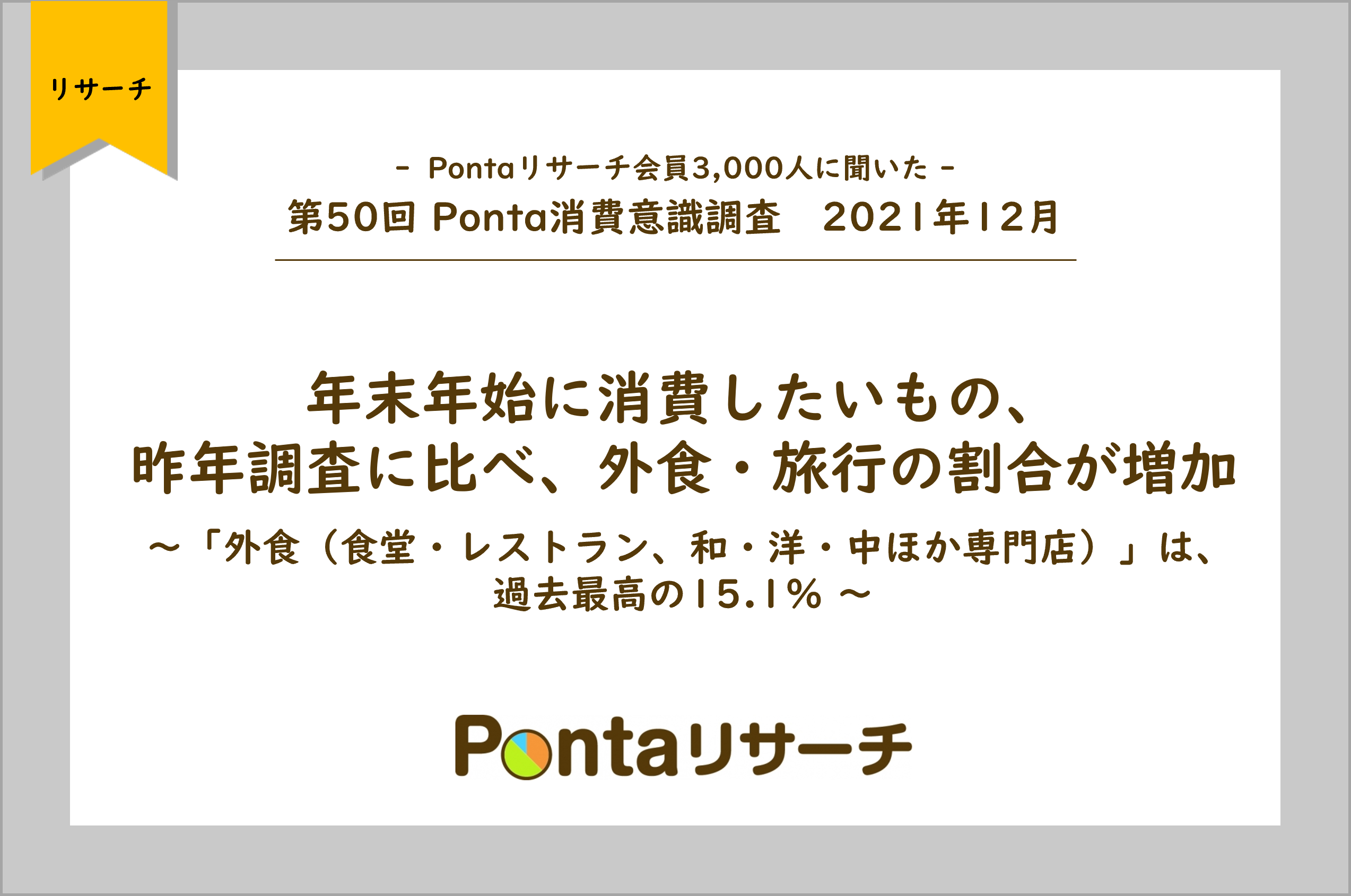 第50回 Ponta消費意識調査 2021年12月発表 年末年始に消費したいもの、昨年調査に比べ、外食・旅行の割合が増加