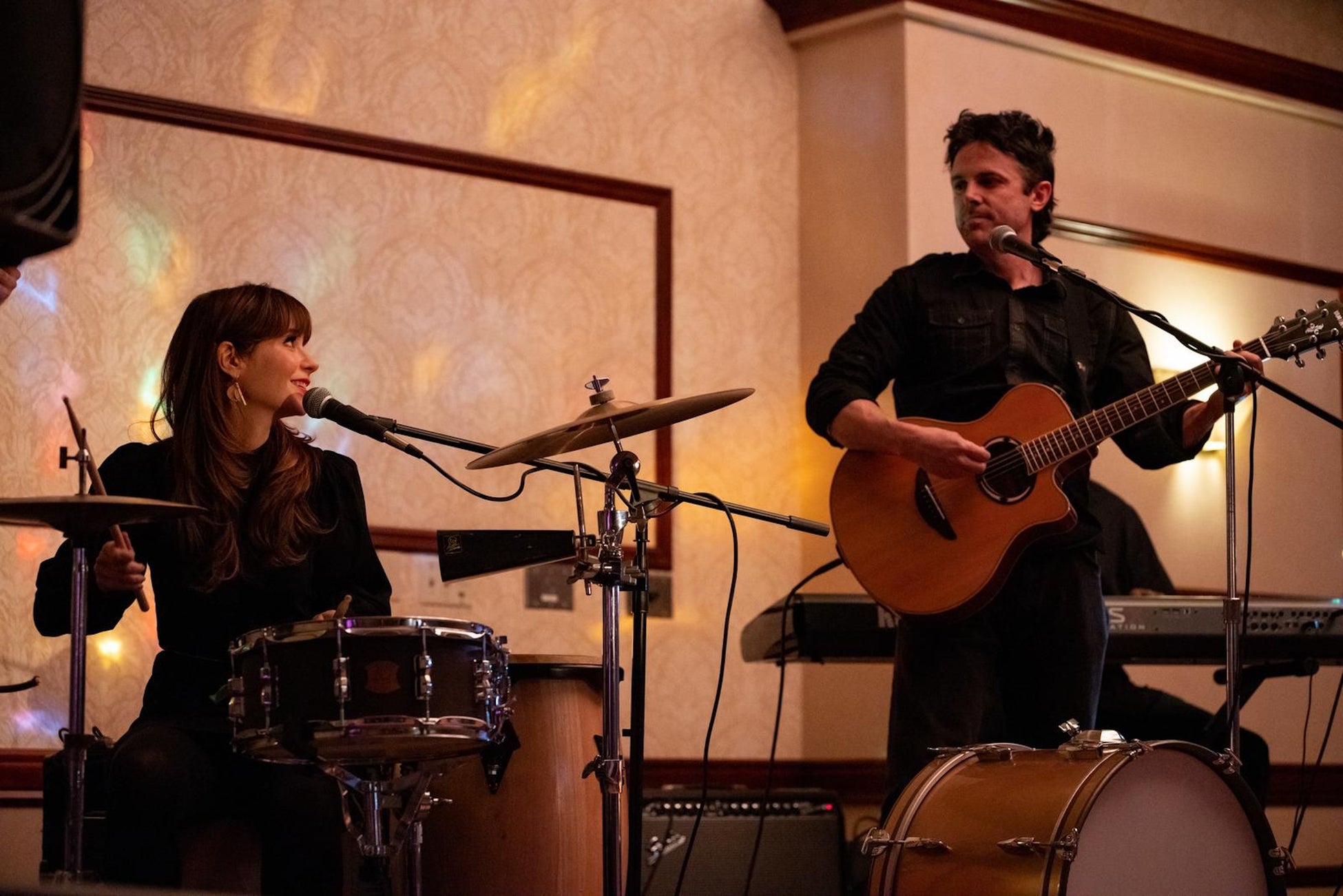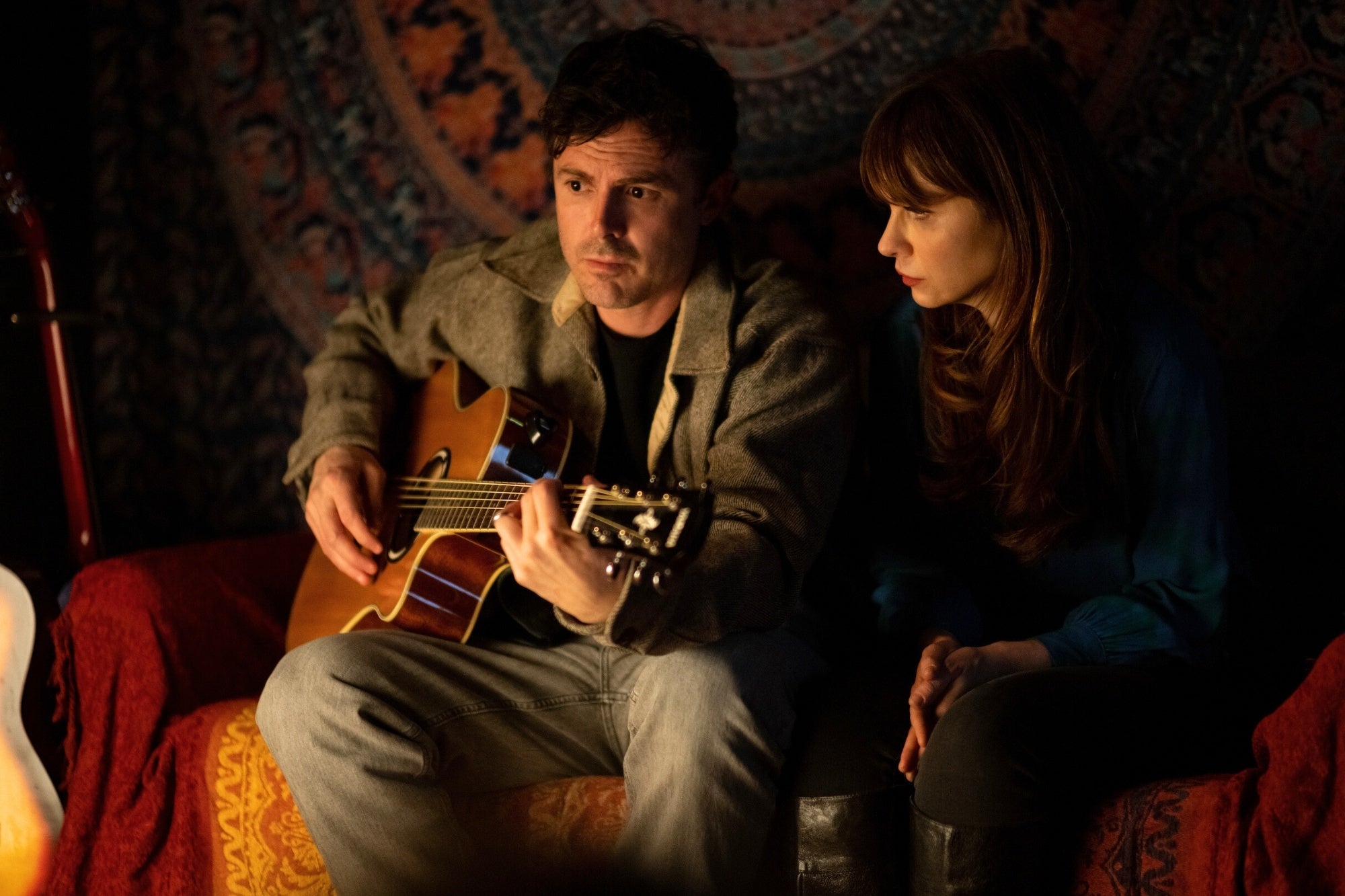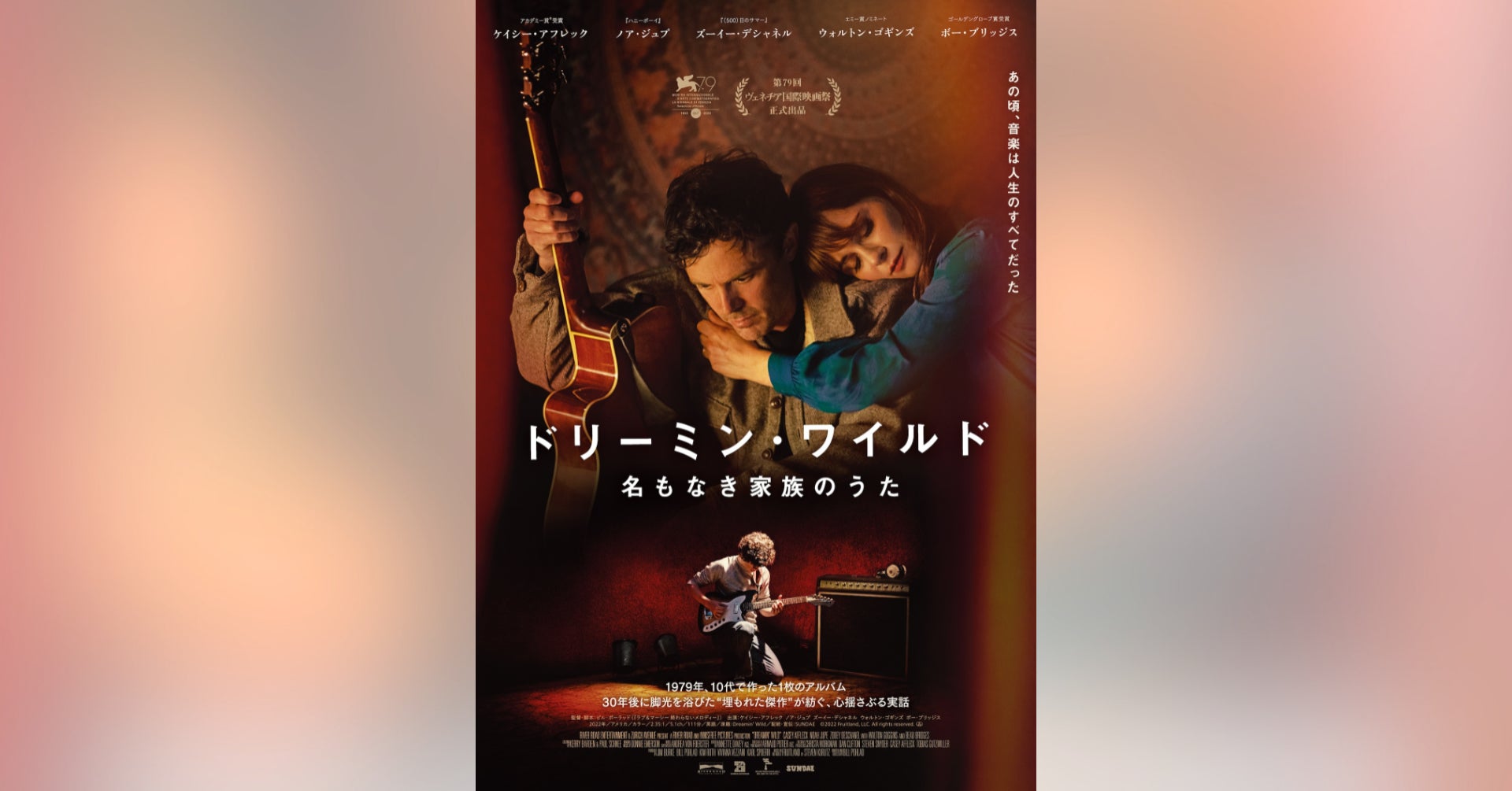 また、併せて解禁となった本ビジュアルでは、ギターを手に俯くドニー(ケイシー・アフレック)と愛情溢れる表情で寄り添う妻ナンシー(ズーイー・デシャネル)の姿が印象的に大きく配され、その下には若きドニー(ノア・ジュプ)が夢中でギターを演奏している姿がエモーショナルに浮かび上がる、温かみのあるビジュアルとなっている。