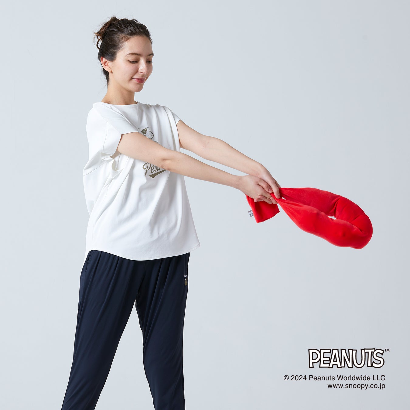 「スヌーピー メディシンボール ウエアグラースィズ」は、スヌーピーがそのままトレーニンググッズになった、ぬいぐるみ型のメディシンボールです。約2kgの重りがおなか部分に内蔵されており、軽いストレッチからおなかや肩まわりのトレーニングまで可能です。マントとアイウエア姿で、ヒーローのようにトレーニングを優しくサポートしてくれます。レッドとブルーの2種類あり、どちらもマントの裏側にはスヌーピーの足跡がデザインされています。マントとアイウエアは取り外しが可能です。
