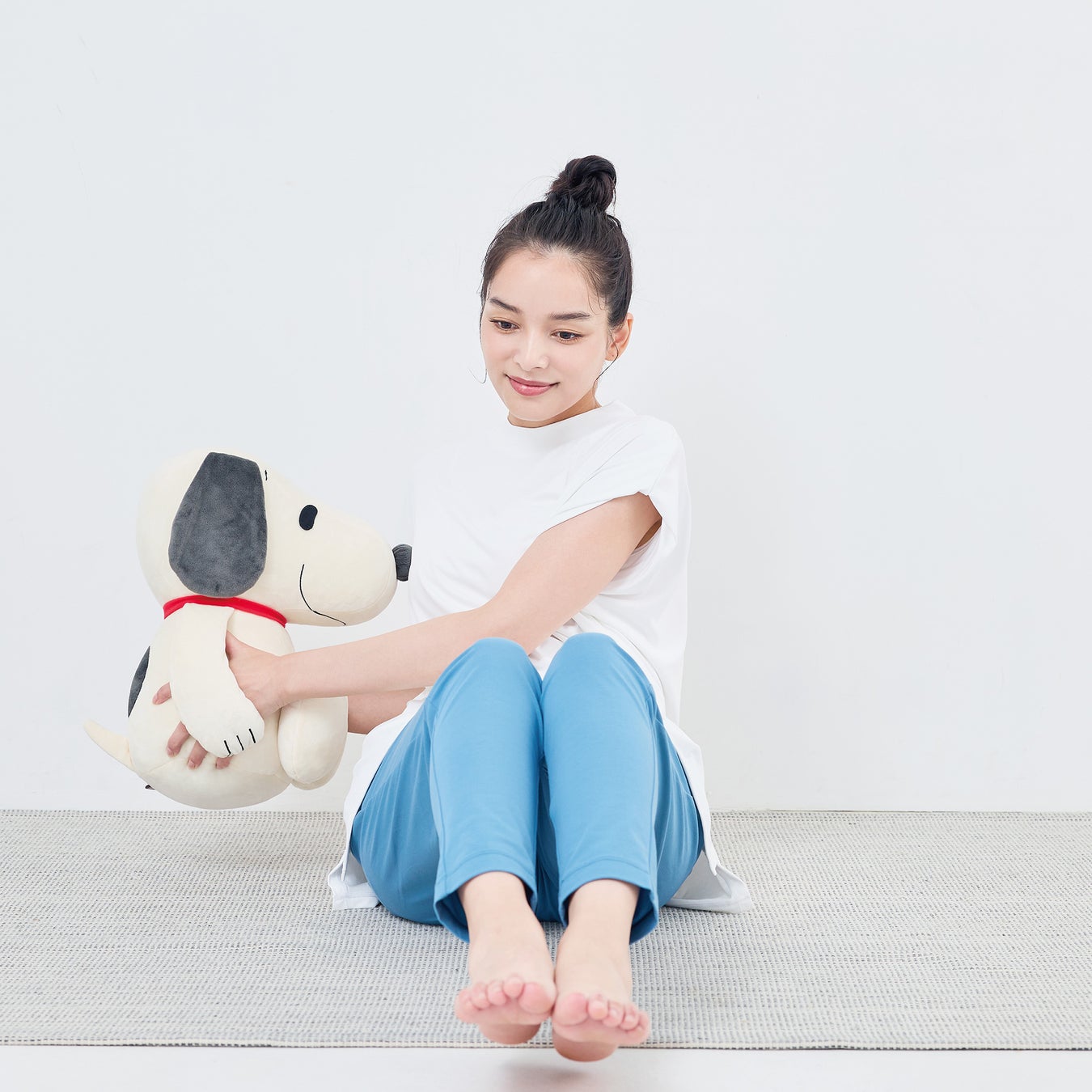 今シリーズは、キュートなキャラクターデザインにスポーツの機能性をプラスした、おうち時間やお出かけシーンがより快適に、楽しくなるシリーズです。使わない時は邪魔になりがちなトレーニンググッズを、「ピーナッツ」のキャラクターにすることで、楽しみながらトレーニングをすることができます。また、ぬいぐるみのような風合いにすることで、使わない時にリビングに出しっぱなしにしていても、インテリアの邪魔をしにくいデザインです。かわいいだけではなく、程よいウエイトが毎日のトレーニングをサポートします。