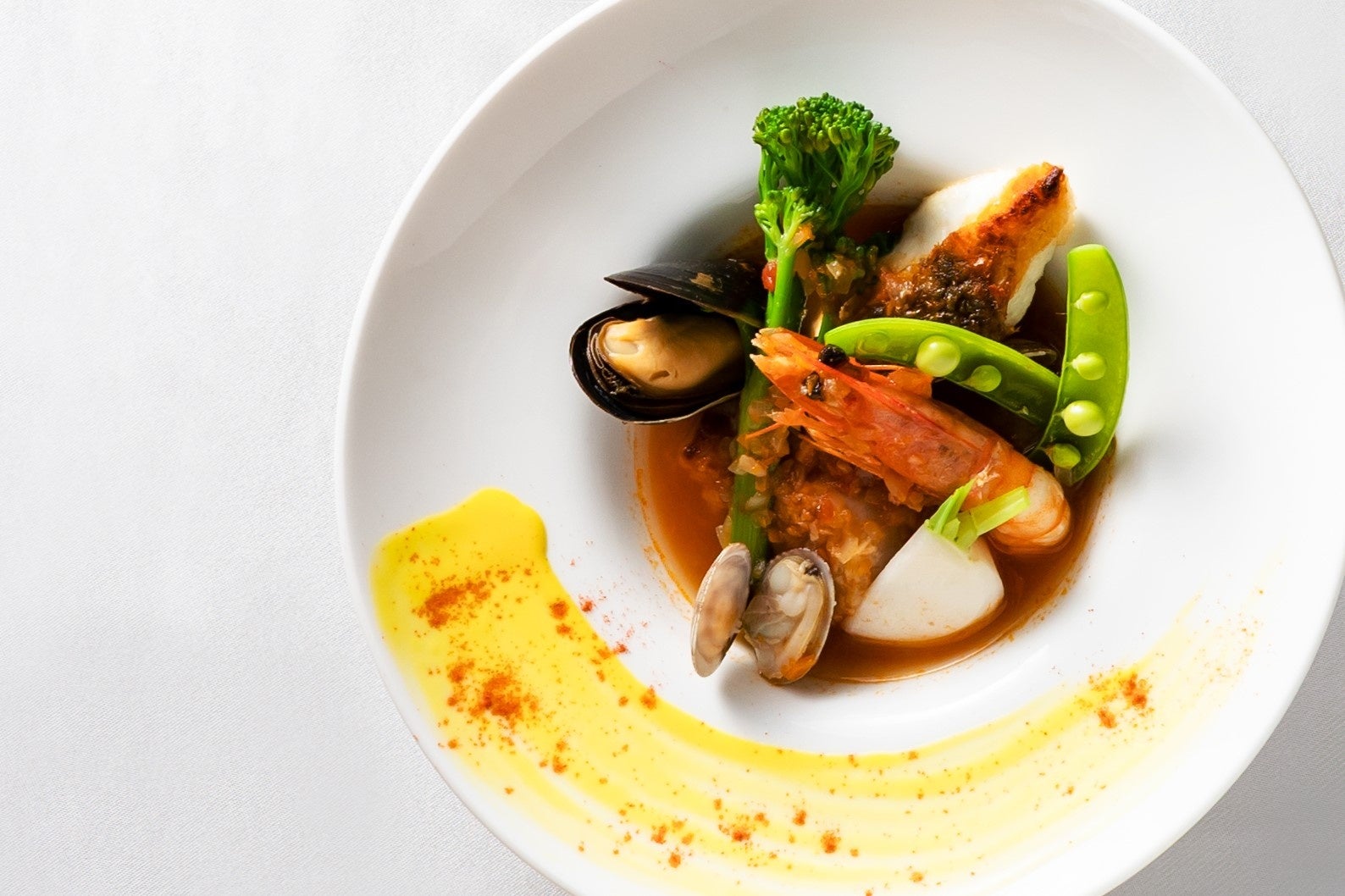 地中海沿岸の海の幸を使ったブイヤベースのようなスペインの郷土料理です。瀬戸内海の魚介を使用しており、濃厚な味わいが口の中で広がる逸品です。