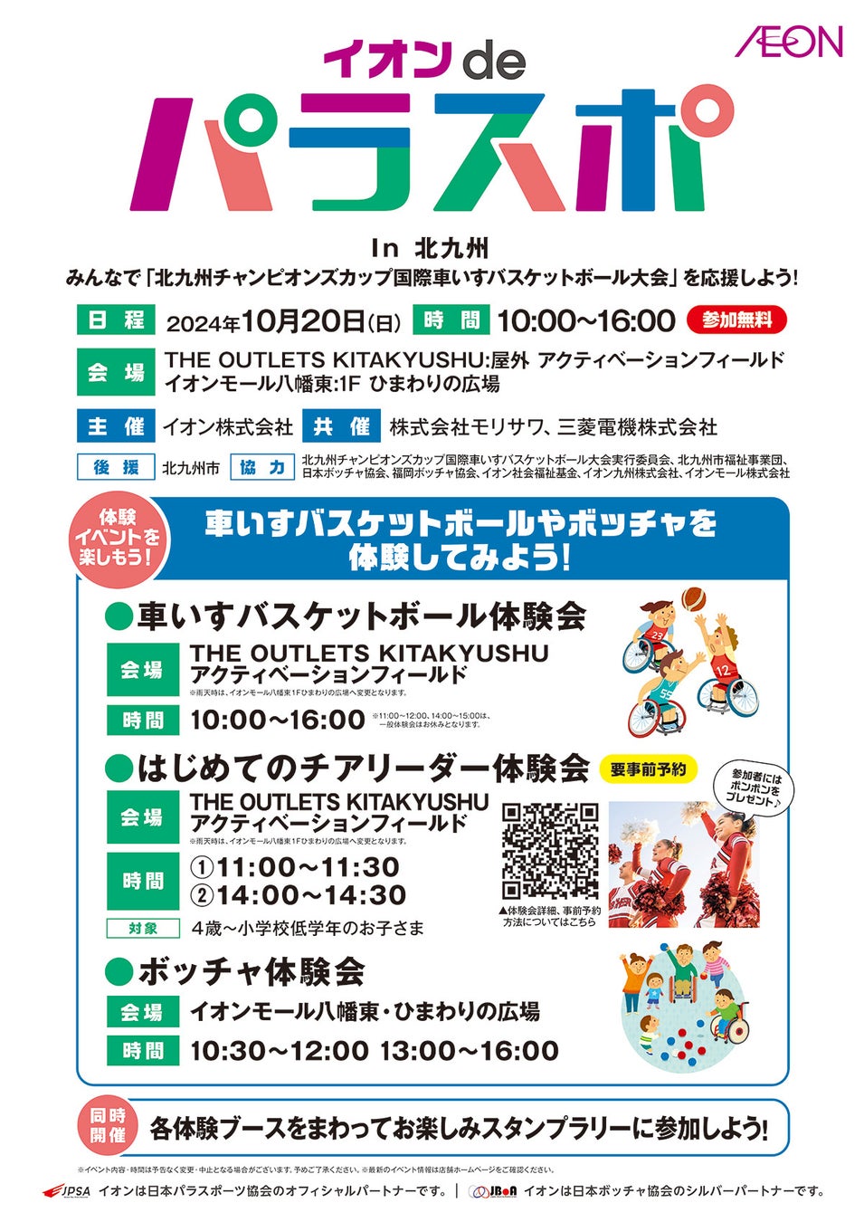 名 称: イオンdeパラスポin北九州 〜みんなで『北九州チャンピオンズカップ国際車いすバスケットボール大会』を応援しよう!〜