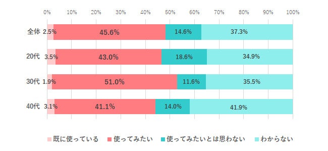 ChatGPTを今後転職活動で使ってみたいかどうか尋ねると、最も多かったのは「使ってみたい」45.6%で、「既に使っている」2.5%を合計すると、約半数の人が使用することに前向きであることがわかります。「使ってみたいとは思わない」は14.6%に留まりました。