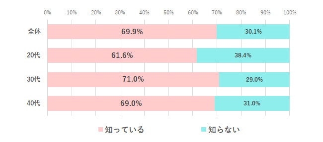 『女の転職type』会員にChatGPT(※1)について知っているかを尋ねたところ、69.9%が「知っている」、30.1%が「知らない」と回答しました。年代別で見てみると、「知っている」と答えた人は20代より、30-40代の方が多い結果でした。