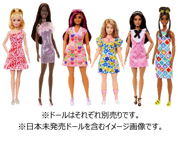 初のダウン症をテーマにした「バービー ファッショニスタ イエローブルーフローラル」、ピンクのスパンコールが光るキラキラドレスを纏った「キラキラバービー ピンクフリル」が数量限定で登場!