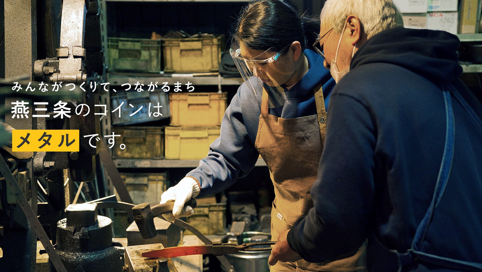 コミュニティ通貨サービス「まちのコイン」は、地域ごとにそれぞれ異なる通貨名を持っています。燕三条エリアでは、訪れる人と迎える人をつなぐコンテンツづくりを通した地域活性・人材育成を目指し、テーマを「みんながつくりて、つながるまち」とし、通貨名は、遠い昔にこの街が「ものづくり」の街として栄えるきっかけとなる「金属加工」を表現する「メタル」にしました。