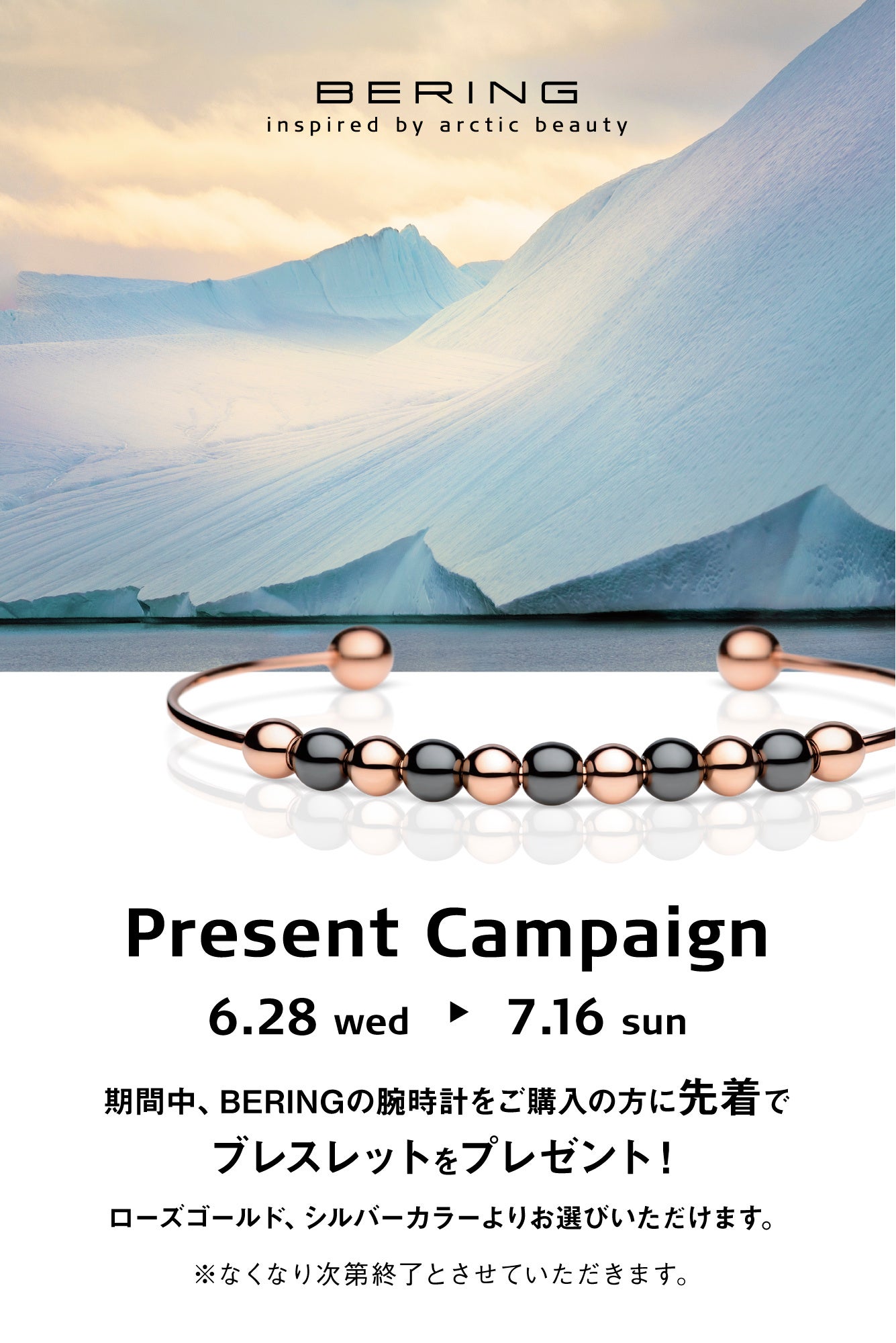 開催内容:期間中、対象店舗でBERINGの腕時計をご購入の方に先着でBERINGのブレスレットをプレゼント。無くなり次第終了します。