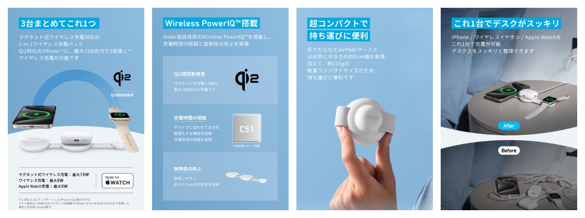 【Anker】最新のiPhone 16シリーズやApple Watchの充電に最適な3-in-1モバイルバッテリーやマグネット式ワイヤレス充電器等を予約販売開始
